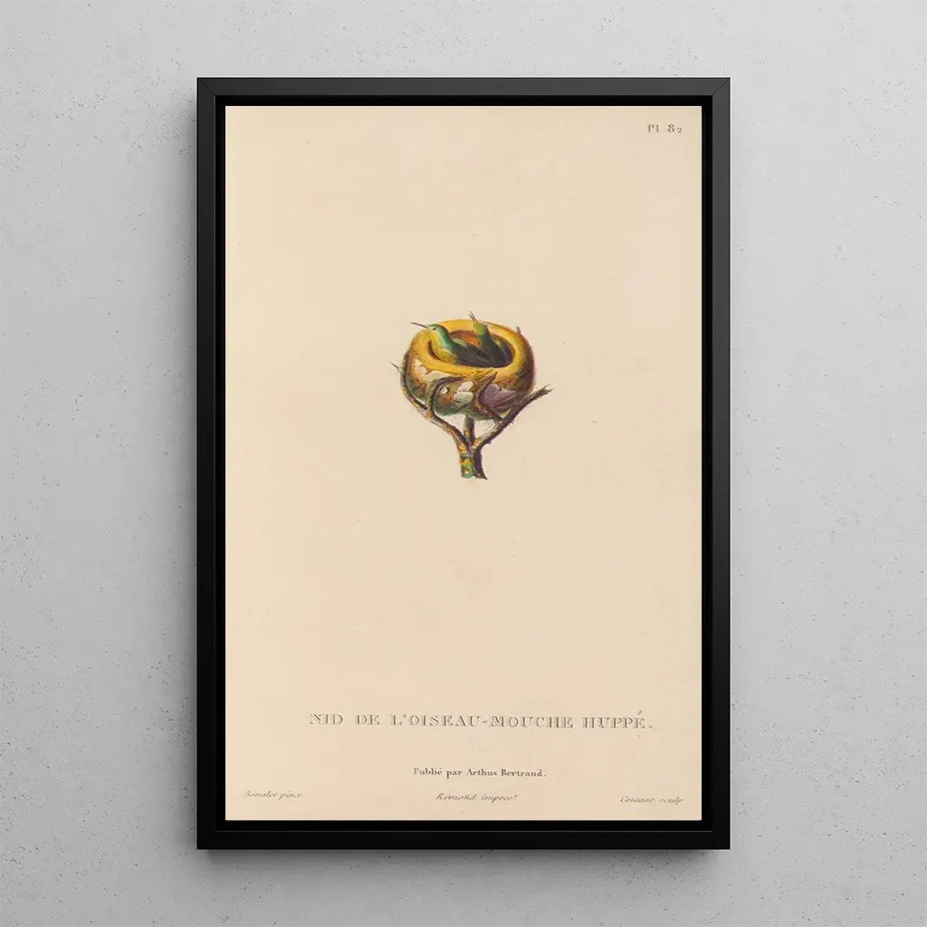 The art print of the work "Histoire naturelle des oiseaux-mouches Pl83" immerses us in a vibrant world where the dazzling colors of plumage blend with the delicacy of shapes. Each bird is depicted with meticulous precision, capturing the very essence of their grace. The shimmering hues, ranging from emerald greens to deep blues, evoke an atmosphere of lightness and movement, as if these creatures come to life before our eyes. The engraving technique used by René Primevère Lesson renders every detail with striking clarity, making this piece a true homage to nature. René Primevère Lesson: a pioneer of artistic ornithology René Primevère Lesson, naturalist and ornithologist of the 19th century, played a crucial role in documenting avian species. His work is set in a period when the study of nature and the classification of species were flourishing. Influenced by the discoveries of his time, he skillfully combined science and art, creating illustrations that have become references. "Histoire naturelle des oiseaux-mouches" testifies to his commitment to representing biodiversity with rigor and aesthetic appeal. Lesson thus contributed to enriching our understanding of birds, while leaving a lasting artistic legacy. A decorative acquisition with multiple advantages Opting for the art print of "Histoire naturelle des oiseaux-mouches Pl83" is a wise choice to enhance your interior. Whether in a living room, office, or bedroom, this canvas adds a touch of elegance and nature. Its printing quality guarantees fidelity to the colors and details of the original work, offering undeniable aesthetic appeal. By integrating this art print into your decor, you invite not only the beauty of hummingbirds into your home but also a part of art and science history, thereby enriching your living space.