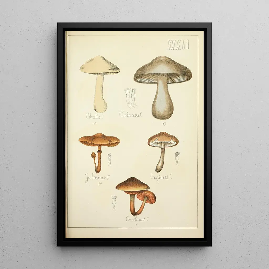 Histoire naturelle des champignons Pl36 : a tribute to fungal biodiversity The artwork "Histoire naturelle des champignons Pl36" by Guillaume Sicard presents itself as a delicate illustration where each mushroom is meticulously detailed. The vibrant colors and subtle shades of the mushrooms, ranging from earthy tones to luminous highlights, captivate the eye. The watercolor technique, used with finesse, brings these fascinating organisms to life, creating an atmosphere that is both scientific and poetic. This canvas invites you to explore the mysterious world of mushrooms, revealing their beauty and complexity. Guillaume Sicard: a pioneer of botanical illustration Guillaume Sicard, active in the 18th century, is recognized for his contributions to scientific illustration, particularly in the field of mycology. His work is set in a period when meticulous observation of nature was taking on considerable importance, influenced by the scientific discoveries of the time. Sicard managed to combine scientific rigor with artistic sensitivity, which allowed him to stand out among his contemporaries. His illustrations, such as that of "Histoire naturelle des champignons Pl36," are not only works of art but also valuable documents for understanding fungal species. A decorative acquisition with multiple advantages The art print of "Histoire naturelle des champignons Pl36" is an ideal decorative piece to enrich the ambiance of a living room, office, or bedroom. Its print quality guarantees remarkable fidelity to the original details, allowing you to appreciate each nuance and texture of the mushrooms. By integrating this art print into your decor, you bring a touch of elegance and erudition to your space. Moreover, its aesthetic appeal and natural theme make it an excellent conversation piece, while celebrating the beauty of biodiversity.