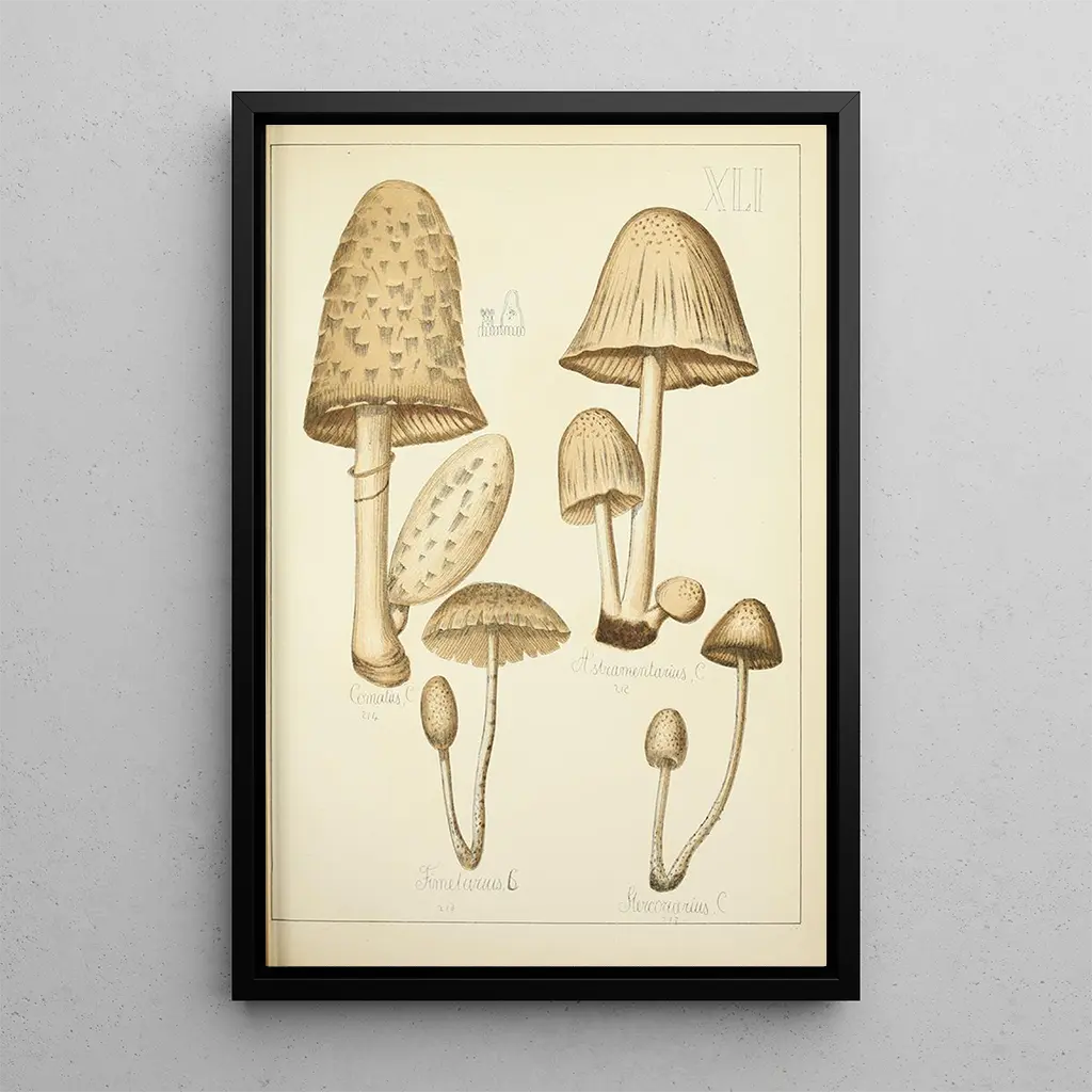Histoire naturelle des champignons Pl41 : un hommage à la diversité fongique L'œuvre "Histoire naturelle des champignons Pl41" de Guillaume Sicard nous invite à explorer la richesse et la diversité du monde des champignons. Cette reproduction met en avant une multitude de formes et de couleurs, révélant la beauté souvent méconnue de ces organismes fascinants. Les nuances délicates et les détails précis, rendus avec une technique de gravure raffinée, créent une atmosphère d'émerveillement et de curiosité. Chaque champignon, représenté avec soin, semble raconter une histoire, incitant le spectateur à s'interroger sur la nature et ses mystères. Guillaume Sicard : un artiste au service de la science Guillaume Sicard, illustrateur botanique du XVIIIe siècle, a joué un rôle essentiel dans la documentation des espèces végétales et fongiques. Son œuvre s'inscrit dans une période de grande effervescence scientifique, où l'observation de la nature était primordiale. Influencé par les découvertes de ses prédécesseurs, Sicard a su allier rigueur scientifique et sens artistique, offrant ainsi des illustrations qui sont à la fois informatives et esthétiques. "Histoire naturelle des champignons Pl41" témoigne de son talent et de son engagement envers la représentation fidèle de la flore, tout en célébrant la beauté naturelle qui nous entoure. Une acquisition décorative aux multiples atouts La reproduction de "Histoire naturelle des champignons Pl41" constitue un ajout décoratif exceptionnel pour tout espace de vie. Que ce soit dans un bureau, un salon ou une chambre, cette toile apporte une touche d'originalité et de sophistication. Sa qualité d'impression garantit une fidélité aux détails, permettant de profiter pleinement de la beauté des champignons. En choisissant ce tableau, vous offrez à votre intérieur une pièce d'art qui stimule la réflexion et l'admiration, tout en enrichissant votre décor d'une note naturelle et artistique.