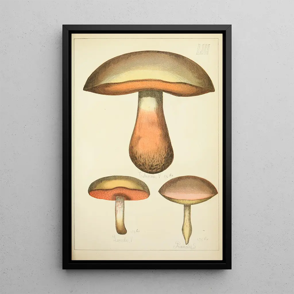 Histoire naturelle des champignons art print Pl53 : un hommage à la diversité fongique La reproduction d'Histoire naturelle des champignons Pl53 nous transporte dans un monde riche en couleurs et en textures, où chaque champignon est représenté avec une minutie exceptionnelle. Guillaume Sicard, à travers cette œuvre, réussit à capturer l'essence même de ces organismes fascinants. Les nuances vibrantes et les détails précis créent une atmosphère à la fois vivante et intrigante, invitant le spectateur à plonger dans l'univers mystérieux des champignons. La composition équilibrée et harmonieuse met en valeur la diversité des espèces, révélant la beauté cachée de la nature. Guillaume Sicard : un artiste au service de la science Guillaume Sicard, illustrateur botanique du XVIIIe siècle, a marqué son époque par ses œuvres dédiées à la mycologie. Son travail s'inscrit dans un contexte où l'exploration scientifique et l'art se rejoignent, permettant une meilleure compréhension des espèces végétales. Influencé par les avancées de la botanique, Sicard a su allier précision scientifique et sensibilité artistique, faisant de ses illustrations des références incontournables. Sa capacité à représenter la diversité des champignons avec un tel réalisme témoigne de son talent et de son engagement envers la science et l'art. Une acquisition décorative aux multiples atouts La reproduction d'Histoire naturelle des champignons Pl53 est une pièce décorative qui apportera une touche d'originalité à votre intérieur. Que ce soit dans un salon, un bureau ou une chambre, cette toile saura captiver l'attention et susciter l'intérêt. Sa qualité d'impression fidèle et son esthétique soignée en font un choix idéal pour ceux qui apprécient la beauté de la nature. En intégrant cette œuvre dans votre décoration, vous offrez à votre espace une ambiance unique, tout en célébrant la richesse du monde fongique. Ce tableau est non seulement un élément décoratif, mais aussi une véritable source d'inspiration et de curiosité.