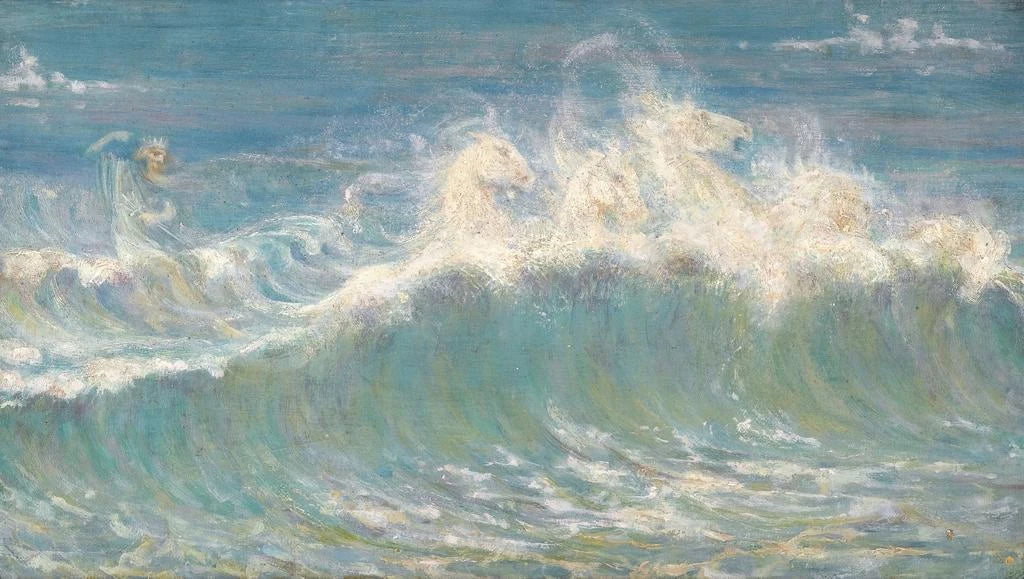Walter Crane, born in 1845, was a British artist whose work was deeply rooted in the Pre-Raphaelite movement. Influenced by fairy tales and literature, he skillfully combined art and illustration, creating works that captivate the imagination. Crane was also a passionate advocate for art for all, seeking to make art accessible to a broad audience. The art print Neptune's Horses reflects his distinctive style, blending elements of nature and mythological stories. His innovative approach left a lasting mark on the art world, making him an essential figure of his time.