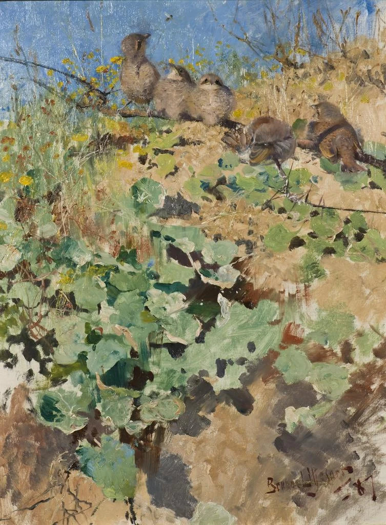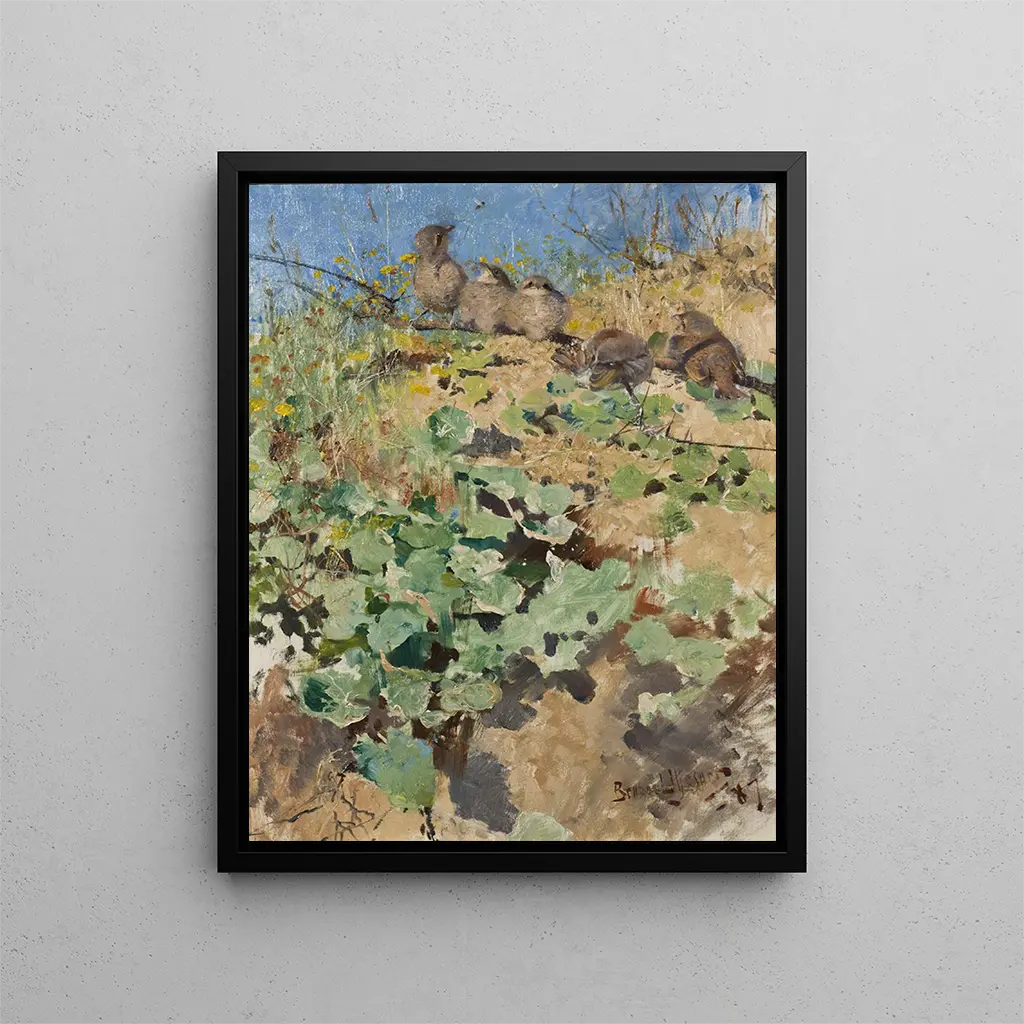 Introduction captivante Dans l'univers fascinant de l'art animalier, l'œuvre "Nids de pie-grièche écorcheur" de Bruno Liljefors se distingue par sa profondeur émotionnelle et son réalisme saisissant. Cette peinture, qui capture un instant de la vie sauvage, invite le spectateur à plonger dans un monde où la nature se dévoile dans toute sa splendeur. L'artiste suédois, reconnu pour sa capacité à immortaliser la faune dans des compositions dynamiques, nous offre ici une vision poignante de la relation entre l'oiseau et son environnement. En contemplant cette œuvre, on ressent une connexion immédiate avec la nature, une invitation à apprécier la beauté des détails souvent négligés. Style et singularité de l’œuvre Le style de Liljefors est caractérisé par un mélange harmonieux de réalisme et d'impressionnisme, où chaque coup de pinceau semble raconter une histoire. Dans "Nids de pie-grièche écorcheur", la lumière joue un rôle central, illuminant les plumes délicates de l'oiseau tout en créant des ombres subtiles qui ajoutent de la profondeur à la scène. La palette de couleurs, riche et nuancée, évoque la chaleur des paysages nordiques, tandis que la précision des détails, des brins d'herbe aux textures des plumes, témoigne d'une observation minutieuse de la nature. Liljefors parvient ainsi à capturer non seulement l'apparence physique de ses sujets, mais aussi leur essence, leur caractère. Cette œuvre est une véritable ode à la vie sauvage, où chaque élément contribue à une composition équilibrée et harmonieuse. L’artiste et son influence Bruno Liljefors, né en 1860, est l'un des artistes les plus influents de l'art animalier scandinave. Sa passion pour la nature et son talent exceptionnel pour la peinture l'ont propulsé au sommet de son art. À une époque où la représentation de la faune était souvent idéalisée, Liljefors a choisi de dépeindre la réalité brute et sauvage, révélant ainsi la beauté et la cruauté du monde naturel. Ses voyages à travers la Suède et au-delà lui ont permis d'observer des scènes de vie sauvage qui ont profondément marqué son œuvre. Il a su inspirer de nombreux artistes contemporains et futurs, redé