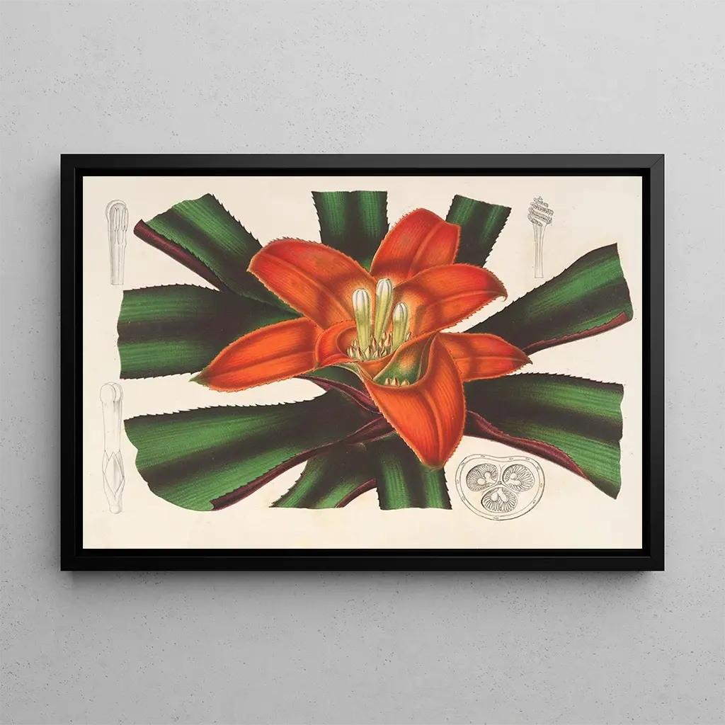 Nidularium Innocentii: A botanical marvel to discover The art print of Nidularium Innocentii, created by Charles Antoine Lemaire, is a true ode to nature. This art print highlights the beauty of exotic plants, with vibrant colors and a harmonious composition. The shades of green, red, and yellow blend to create a lively and soothing atmosphere. Lemaire's technique, which combines precision and sensitivity, captures the very essence of this tropical plant. Every detail is carefully rendered, inviting the viewer to immerse themselves in a rich and fascinating botanical universe. Charles Antoine Lemaire: A pioneer of botanical art Charles Antoine Lemaire, a 19th-century botanist and artist, mastered the art of blending science and art in his works. Influenced by the botanical discoveries of his time, he dedicated his life to studying and depicting plants. His style, at the crossroads of scientific illustration and fine art, marked an era when fascination with nature was at its peak. Lemaire also contributed to the dissemination of botanical knowledge through his publications, making him an essential figure in the field of botanical art. A decorative piece with multiple virtues The art print of Nidularium Innocentii is an ideal decorative piece to bring a touch of greenery to your interior. Whether in a living room, office, or bedroom, this artwork adds a serene and natural ambiance. Its printing quality guarantees faithful reproduction of the colors and details of the original work, while offering undeniable aesthetic appeal. By choosing this canvas, you opt for a decoration that combines elegance and originality, while celebrating the beauty of nature.