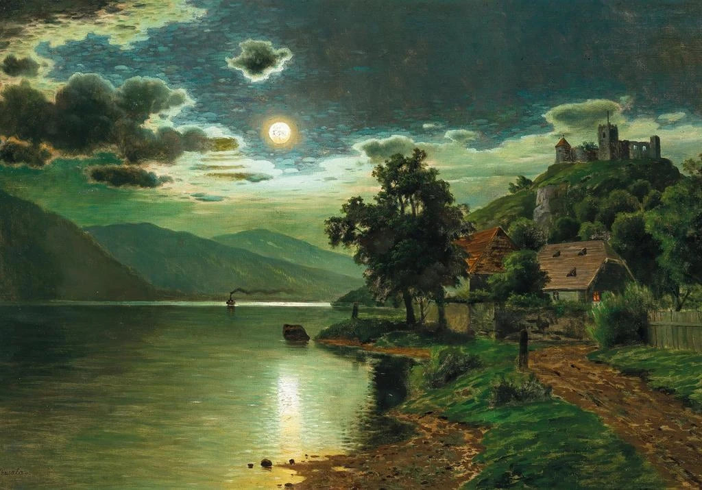Night by moonlight over a lake: an enchanting nocturnal dream