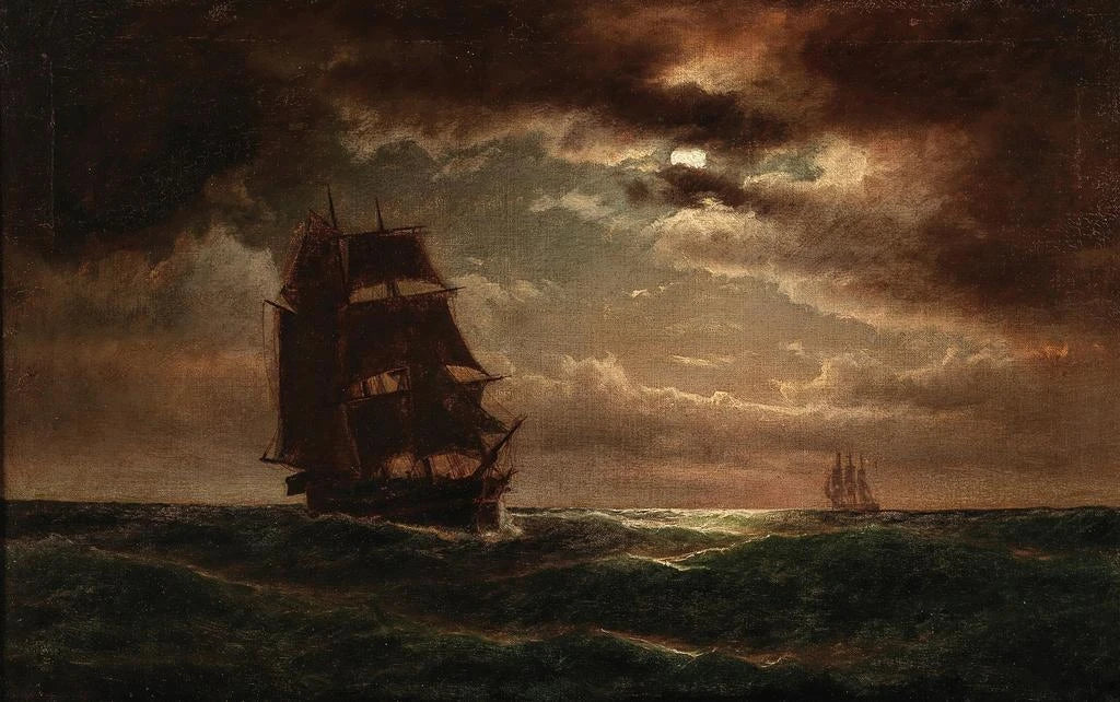 Moonlit Night with Three-Masts: a nocturnal dance on the waves
