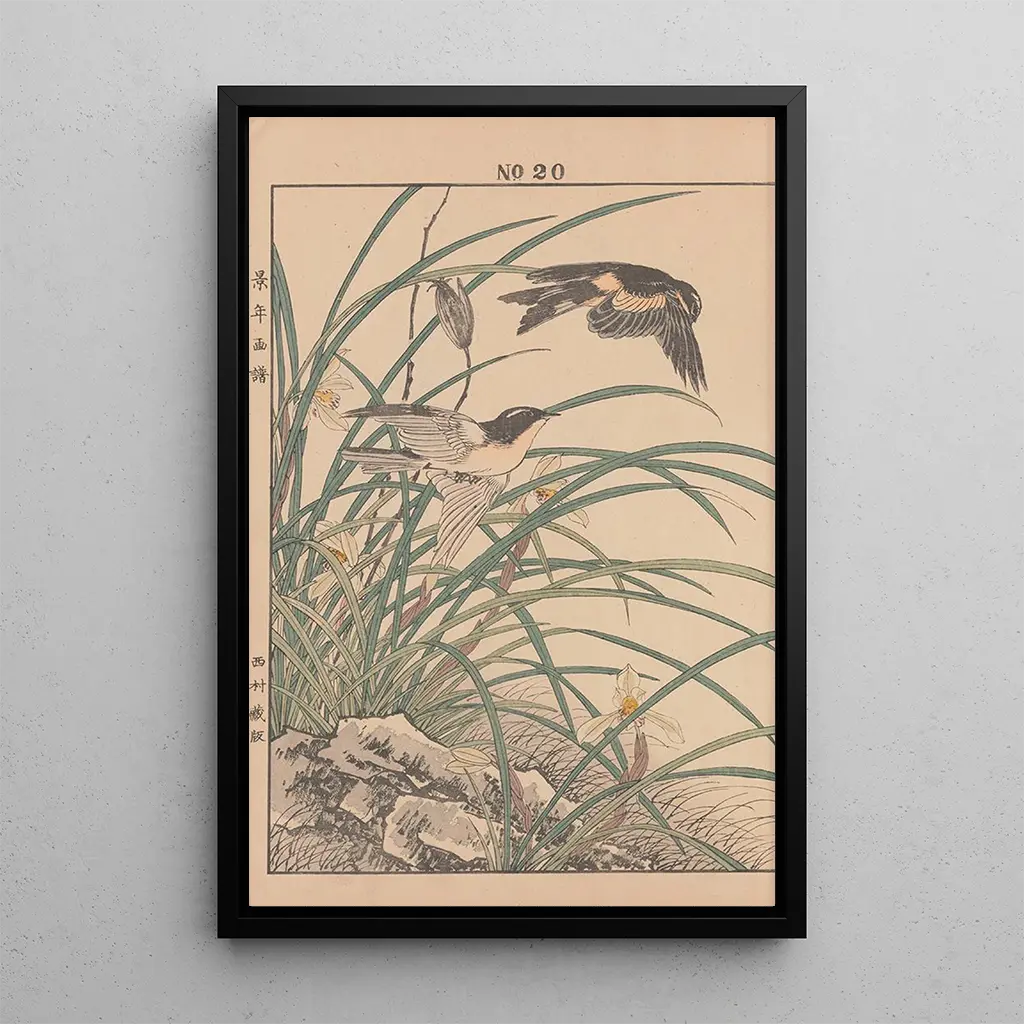 Keinen kach gafu Pl067 art print by Imao Keinen transports us to a universe where nature flourishes with grace. This piece, rich in detail and color, evokes enchanting landscapes, where each element is carefully depicted. The delicate shades of green and blue create a serene atmosphere, while floral motifs add a touch of poetry. The printmaking technique, characteristic of Japanese art, allows us to feel the lightness and fluidity of the forms, making this canvas a true masterpiece of contemplation. Imao Keinen: the artist at the crossroads of tradition Imao Keinen is a Japanese artist whose work is rooted in the continuity of ukiyo-e tradition while incorporating contemporary elements. Active during the Meiji period, he captured the essence of his era while paying homage to ancestral techniques. His works, often inspired by nature, demonstrate great finesse and a particular attention to detail. As an artist, Keinen played a vital role in preserving and modernizing Japanese printmaking, making him an essential figure in Japanese art. A decorative acquisition with multiple assets The Keinen kach gafu Pl067 art print is a decorative piece that will enhance any space, whether a living room, office, or bedroom. Its print quality and authenticity make it a preferred choice for art enthusiasts. With its refined aesthetic and soothing colors, this artwork creates a warm and welcoming atmosphere. By incorporating this print into your decor, you bring a touch of elegance and serenity to your interior, while celebrating Japanese artistic heritage.