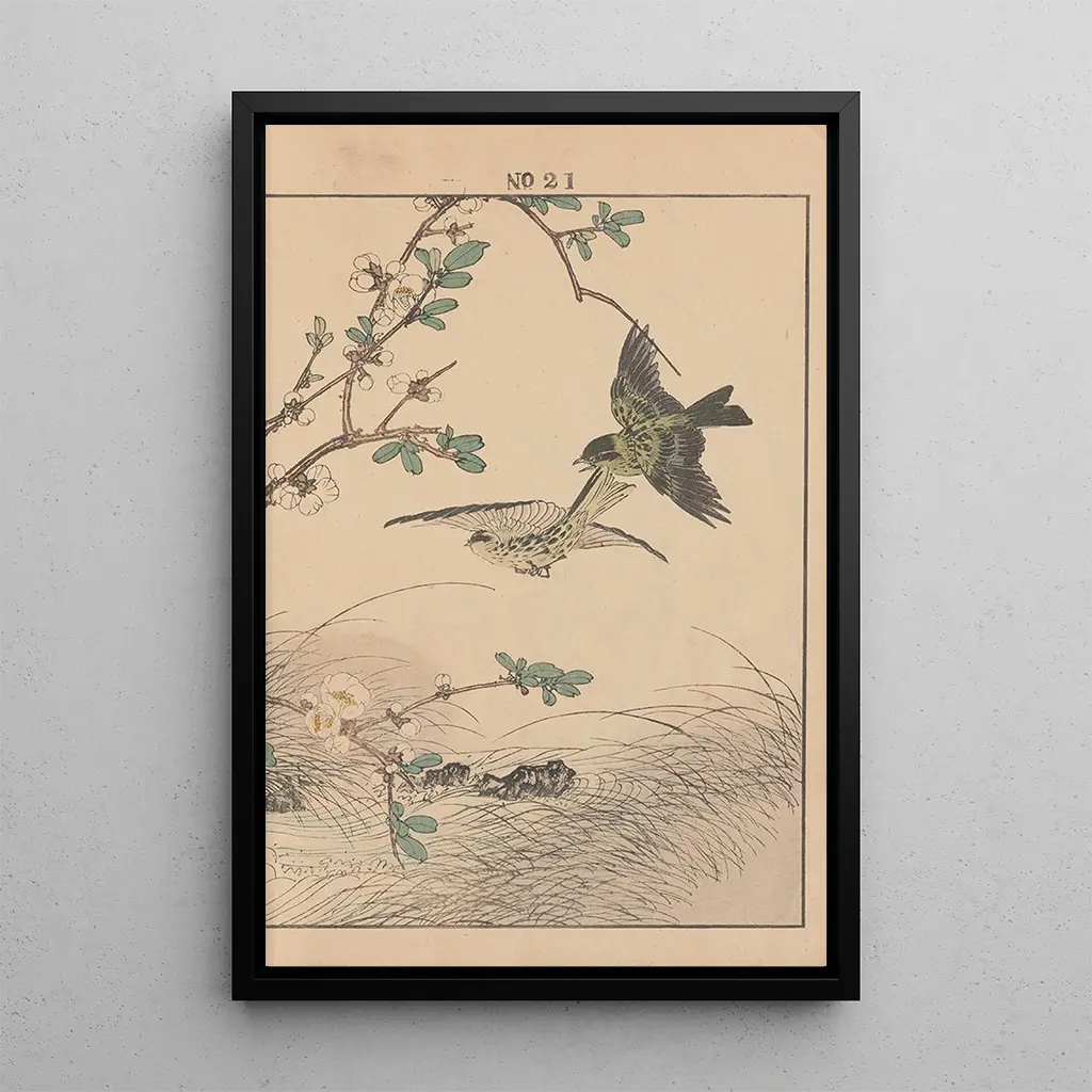 The art print of the work Keinen kach gafu Pl068 immerses us in a universe where nature and art meet with delicacy. The soft colors and floral motifs evoke the serenity of a Japanese garden, while the technique of traditional ukiyo-e print emphasizes the meticulousness of the artist's work. Every detail, from delicate petals to vibrant leaves, seems to capture a fleeting moment, an invitation to contemplation. The peaceful atmosphere emanating from this canvas transports the viewer to a dimension where time stands still, offering a visual and spiritual escape.