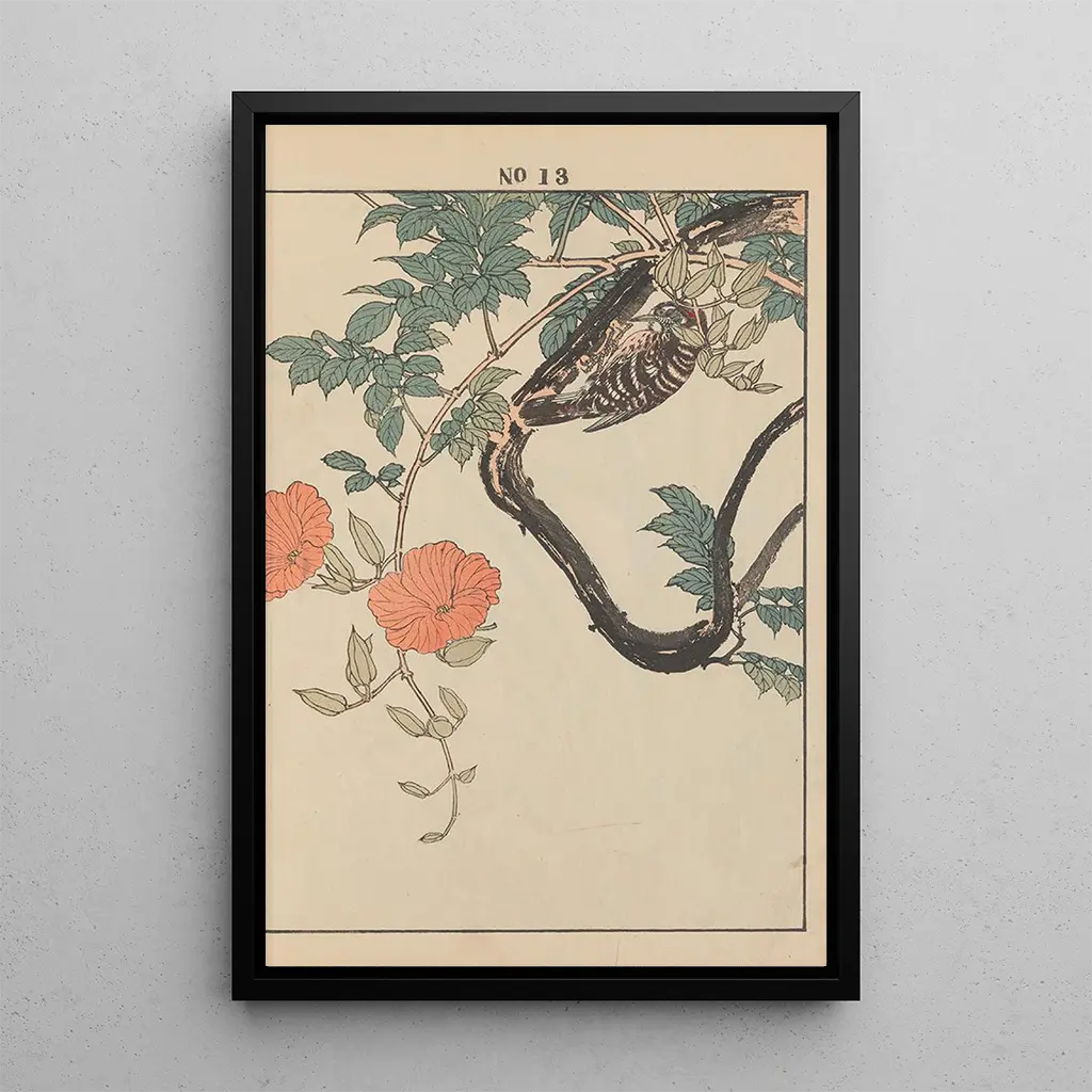 Keinen kach gafu Pl098 art print takes us into a lush garden, where each flower is depicted with remarkable precision. The vibrant colors and delicate patterns blend to create a lively scene, full of light and freshness. The technique of Japanese woodblock printing, with its layers of superimposed colors, gives a unique depth to this artwork. The atmosphere it emanates is both joyful and soothing, inviting the viewer to immerse themselves in the ephemeral beauty of nature. Imao Keinen: a pioneer of floral art prints Imao Keinen, an iconic figure of ukiyo-e art prints, captured the essence of nature through his works. Active at the end of the 19th century, he was influenced by traditional Japanese artistic styles while incorporating modern elements. His work is distinguished by meticulous attention to detail and a sensitivity to the beauty of flowers and birds. Keinen helped popularize floral art prints, making him an essential artist of his time and a forerunner in the art of depicting nature with such delicacy. A decorative acquisition with multiple assets The reproduction of the Keinen kach gafu Pl098 painting is a wise decorative choice to enhance your living space. Whether in a living room, office, or bedroom, this canvas adds a touch of nature and serenity. Its printing quality ensures impressive fidelity to the details of the original artwork, allowing you to appreciate every nuance. The aesthetic appeal of this reproduction lies in its ability to adapt to various decorating styles, while offering a window into traditional Japanese art and floral beauty.