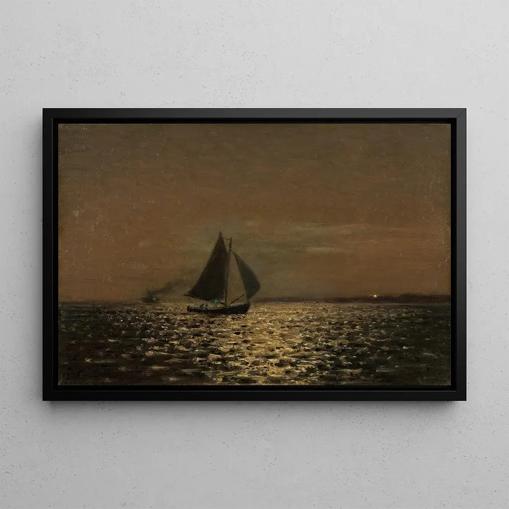 Atmosphere Nocturne at Hvaler: a visual poetry under the stars In this art print of Atmosphere Nocturne at Hvaler, Amaldus Nielsen transports us to a world of nocturnal serenity. The shades of deep blue and black blend harmoniously, creating a soothing atmosphere. The silvery reflections of the moon dance on the waves, while the silhouettes of boats are delicately outlined on the horizon. Nielsen's technique, which combines realism with a touch of impressionism, allows the artwork to breathe a certain magic. Each brushstroke seems to capture a fleeting moment, an invitation to escape into this maritime scene. Amaldus Nielsen: a master of Scandinavian landscape Amaldus Nielsen, a Norwegian painter of the 19th century, is renowned for his marine landscapes and nocturnal scenes. Influenced by the Romantic movement, he dedicated himself to capturing Norway's natural beauty. Nielsen mastered the interplay of light and shadow, creating works that evoke both tranquility and the power of nature. His period of activity, marked by an exploration of the effects of light on water, left a lasting imprint on Scandinavian art. His paintings, like Atmosphere Nocturne at Hvaler, demonstrate his skill in evoking emotions through familiar landscapes. A decorative acquisition with multiple assets The art print of Atmosphere Nocturne at Hvaler is an ideal choice to enhance your interior, whether in a living room, office, or bedroom. Its soothing color palette and serene ambiance make it a focal point that draws the eye and invites contemplation. The quality of the reproduction ensures remarkable fidelity to the original work, allowing you to enjoy every detail. By incorporating this canvas into your decor, you bring a touch of elegance and poetry, while celebrating Scandinavian art in your living space.
