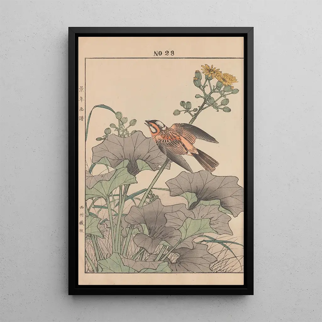 The art print of Keinen kach gafu Pl147 immerses us in a delicate universe where the beauty of flowers and birds blends harmoniously. The pastel colors, soft and soothing, create a serene atmosphere, while the technique of Japanese woodblock printing, with its flowing and precise lines, brings each detail to life. The floral motifs, typical of Japanese art, evoke silent contemplation, inviting the observer to pause and appreciate the fragility of nature. This painting, a true ode to ephemeral beauty, reminds us of the importance of savoring life's fleeting moments.