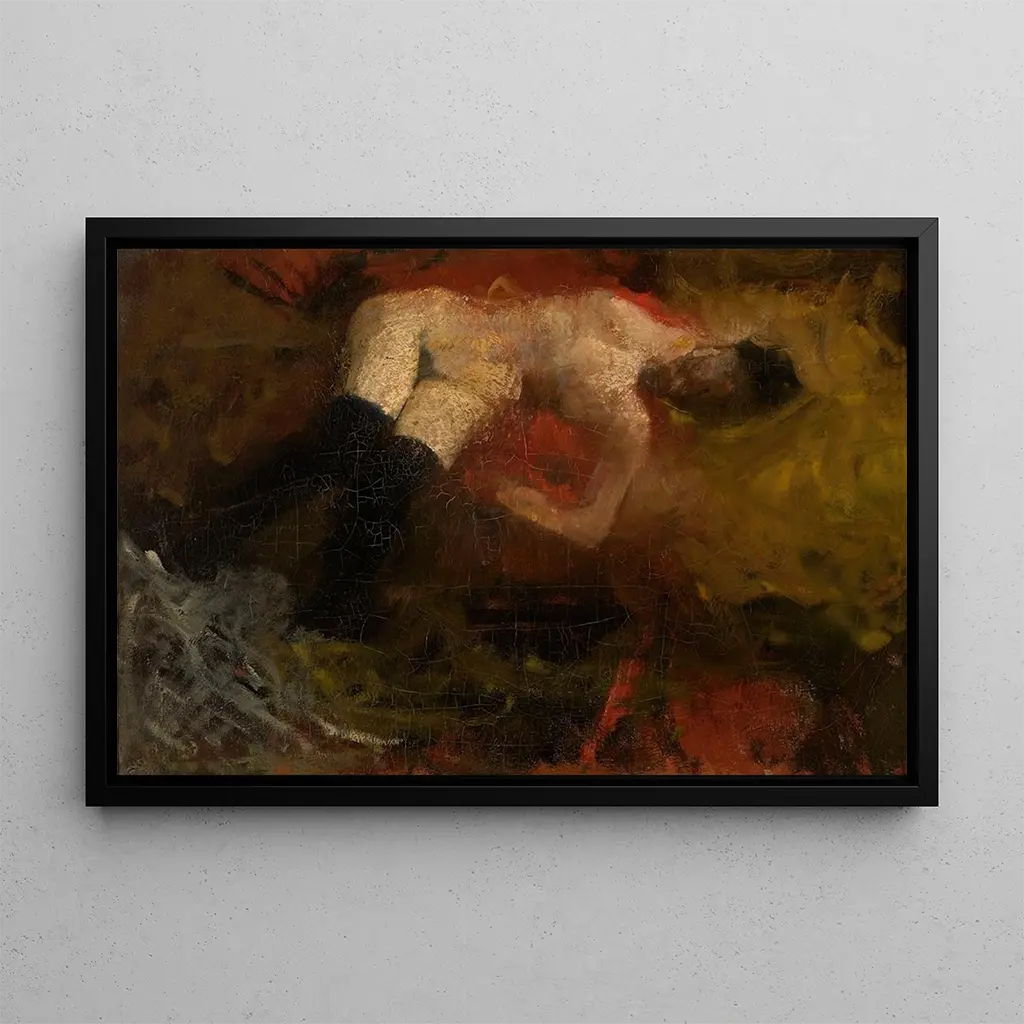 Dans cette art print du tableau Nu de George Hendrik Breitner, la sensualité et la délicatesse se rencontrent dans une composition harmonieuse. Les courbes du corps féminin sont mises en valeur par des couleurs chaudes et des nuances subtiles, créant une atmosphère intimiste et contemplative. La technique de l'artiste, qui mêle habilement le réalisme à une touche impressionniste, permet de ressentir la texture de la peau et la lumière qui joue sur le corps. Chaque détail, du drapé des tissus à l'expression du modèle, invite le spectateur à plonger dans un moment de pure beauté.