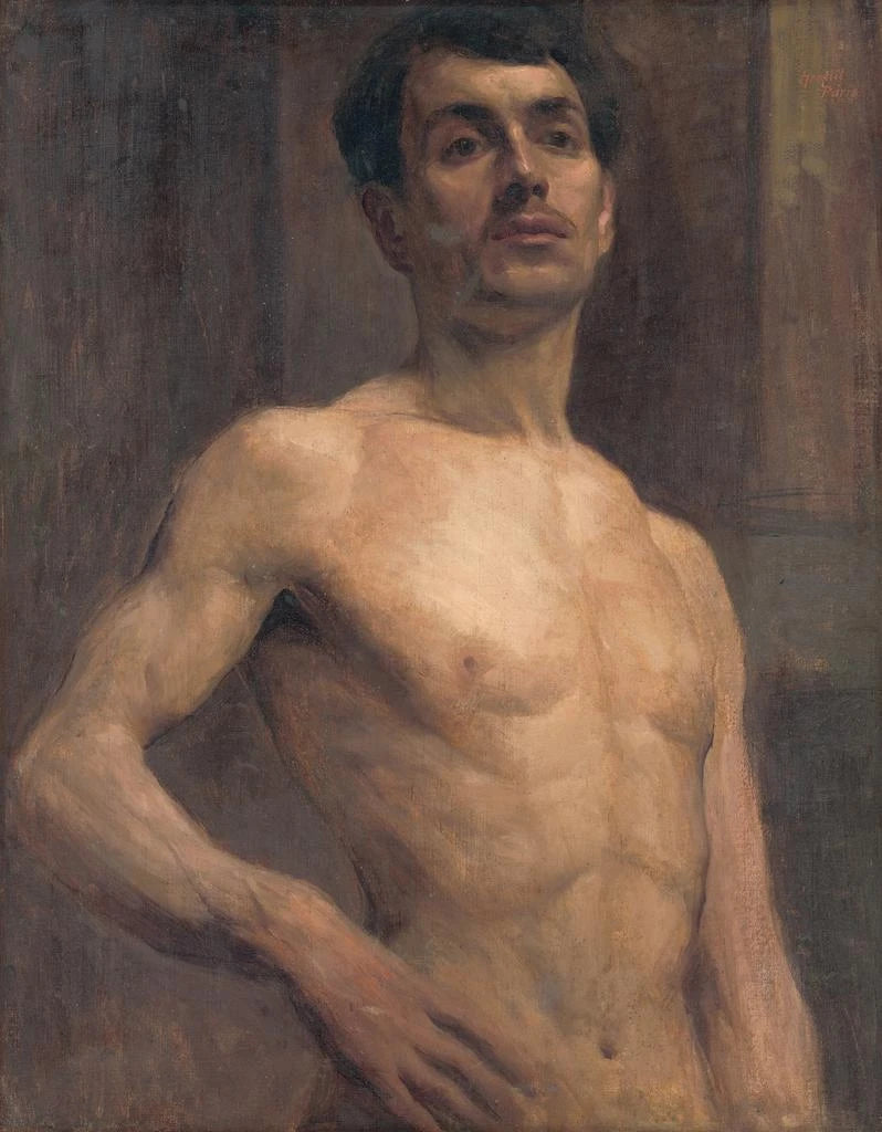 Elemér Halász-Hradil's style is characterized by a distinctive approach that combines realism and abstraction. In "Nude male," the artist skillfully plays with light and shadow, creating a contrast that highlights the musculature and delicacy of the male body. The flowing lines and sensual shapes blend to offer a vision that is both powerful and gentle. Halász-Hradil manages to capture an essence of masculinity that goes beyond clichés, revealing psychological and emotional depth. Every detail appears to be carefully thought out, each brushstroke demonstrating exceptional technical mastery. The work thus invites prolonged contemplation, where each gaze can reveal a new facet of human intimacy.