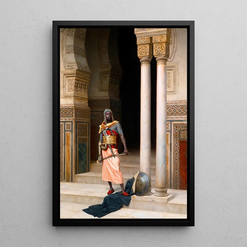 Choosing an art print of "A Nubian Guard" enriches your interior with a touch of exoticism and culture. Whether in a living room, office, or bedroom, this artwork draws the eye and sparks curiosity. Its reproduction quality guarantees fidelity to the original details, allowing you to fully enjoy the unique atmosphere of the piece. With its undeniable aesthetic appeal, this canvas becomes a decorative element that not only beautifies the space but also evokes conversations about art and history.