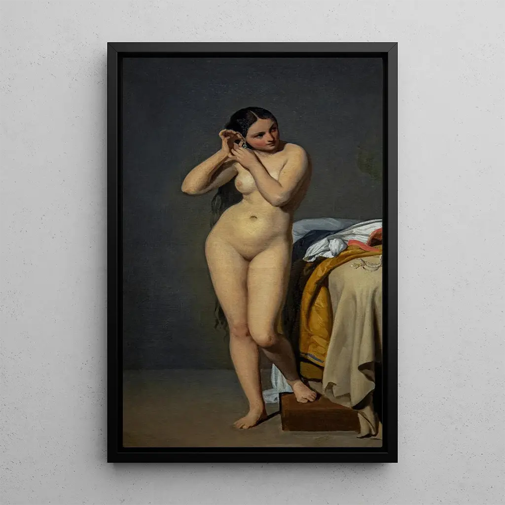 Paul Jourdy, active in the 19th century, is recognized for his exceptional talent in the field of academic painting. Trained at the École des beaux-arts de Paris, he developed a style that combines realism and sensitivity. Influenced by the great masters of classical painting, Jourdy captured the essence of his subjects with remarkable precision. His work often explores the human figure, particularly the nude, which earned him a prominent place in the artistic landscape of his time. "Nu à la console" demonstrates his skill in representing feminine beauty with unparalleled delicacy.