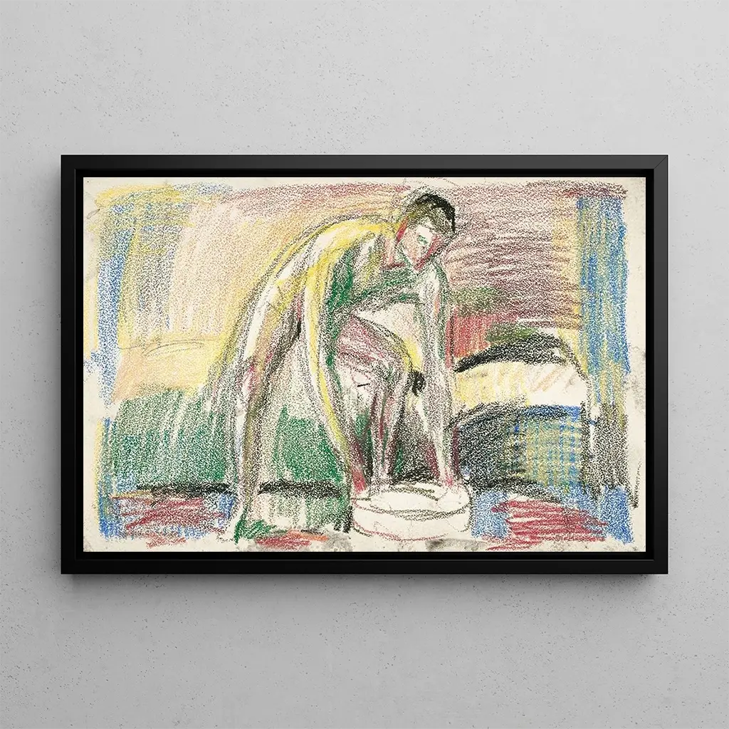Edvard Munch, an emblematic Norwegian artist of the late 19th and early 20th centuries, is often considered a precursor of expressionism. His work is deeply influenced by his personal experiences and inner struggles, which is reflected in his recurring themes of death, love, and melancholy. "Man washing his feet" fits into this exploration of the human psyche, demonstrating Munch's importance in the evolution of modern art and his impact on future generations of artists.