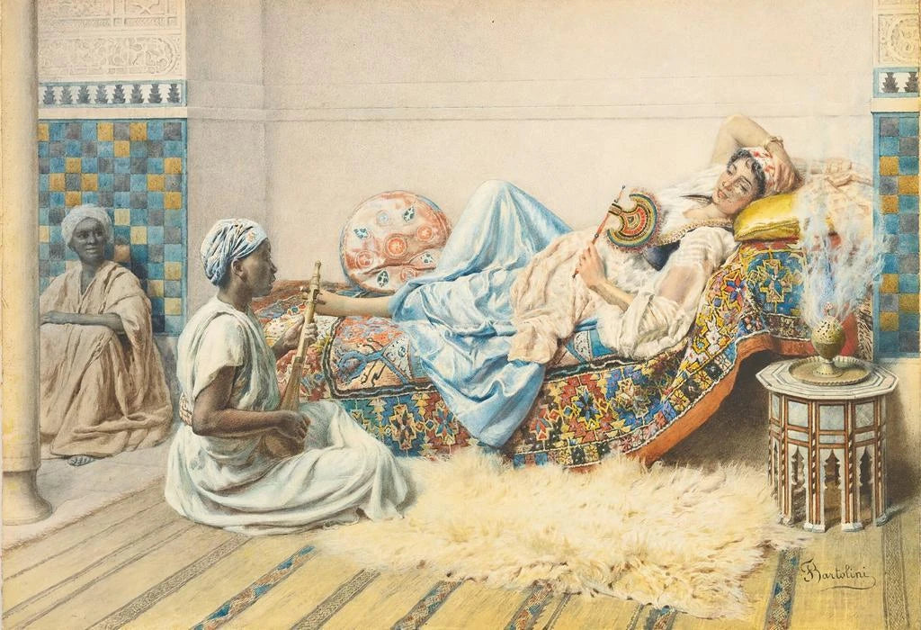 Federico Bartolini, active in the 19th century, was an Italian painter whose work is rooted in the Romantic movement. Influenced by the artistic currents of his time, he skillfully incorporated Orientalist elements into his works, reflecting a fascination with the Orient and its mysteries. Bartolini was trained in Italian academies, where he developed a personal style blending realism and idealization. Odalisque is one of his most famous works, demonstrating his ability to capture female beauty and evoke exotic atmospheres, while fitting into the artistic context of his era.