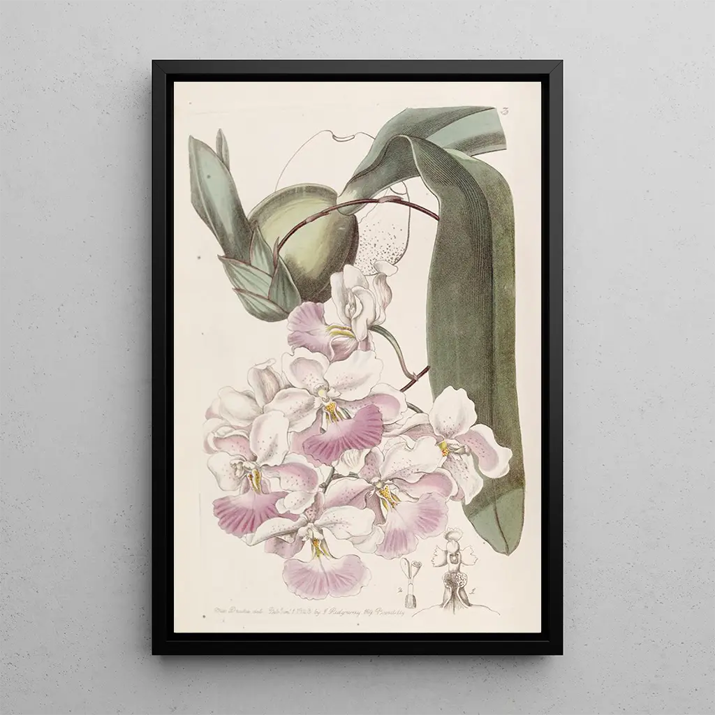 The Odontoglossum with a Lemon Scent, a masterpiece by Sydenham Edwards, is a true celebration of natural beauty. This art print highlights vibrant colors, ranging from bright yellow to tender green, evoking the freshness of a lush garden. The watercolor technique, applied with finesse, captures the delicacy of the petals and the complexity of the forms. The atmosphere conveyed by this canvas is both soothing and enchanting, inviting the viewer to immerse themselves in a world of serenity and contemplation. Every detail, every nuance, seems to whisper the secrets of nature.