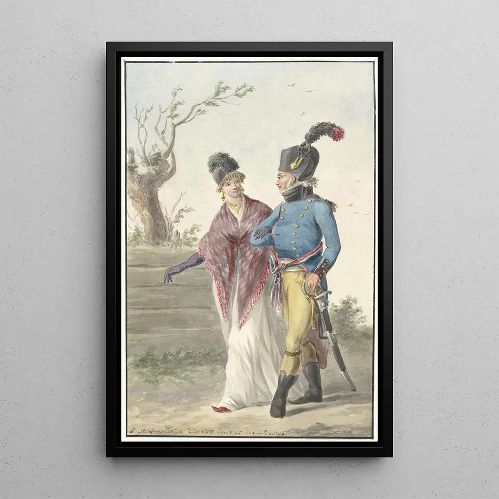 Officer of the Engineers: a portrait of authority and determination The art print "Officer of the Engineers" by Jan Anthonie Langendijk features a military figure in a commanding posture, illustrating strength and resolve. The dark colors of the uniform are highlighted by touches of light that emphasize the details of the face and accessories. The composition, centered on the character, creates an immediate connection with the viewer, evoking a sense of respect and admiration. Langendijk's technique, blending realism and finesse, allows you to feel the intensity of the captured moment, as if the officer were about to address his audience. Jan Anthonie Langendijk: an artist dedicated to military iconography Jan Anthonie Langendijk, a Dutch painter of the 17th century, made a name for himself through his military portraits. His style, influenced by the artistic conventions of his time, is distinguished by meticulous attention to detail and mastery of light effects. Langendijk played a key role in the depiction of officers, helping to shape the image of military authority in art. Through his works, he not only documented military history but also celebrated the courage and dedication of men in uniform. A decorative art print with multiple assets The reproduction of the "Officer of the Engineers" is an ideal choice to enhance your interior decoration, whether in an office, a living room, or a waiting area. Its reproduction quality guarantees remarkable fidelity to the details of the original artwork, allowing you to fully appreciate Langendijk's virtuosity. This art print, through its aesthetic appeal, becomes a focal point of the room, sparking interest and conversation. By integrating this canvas into your space, you add a touch of history and character, while celebrating military artistic heritage.