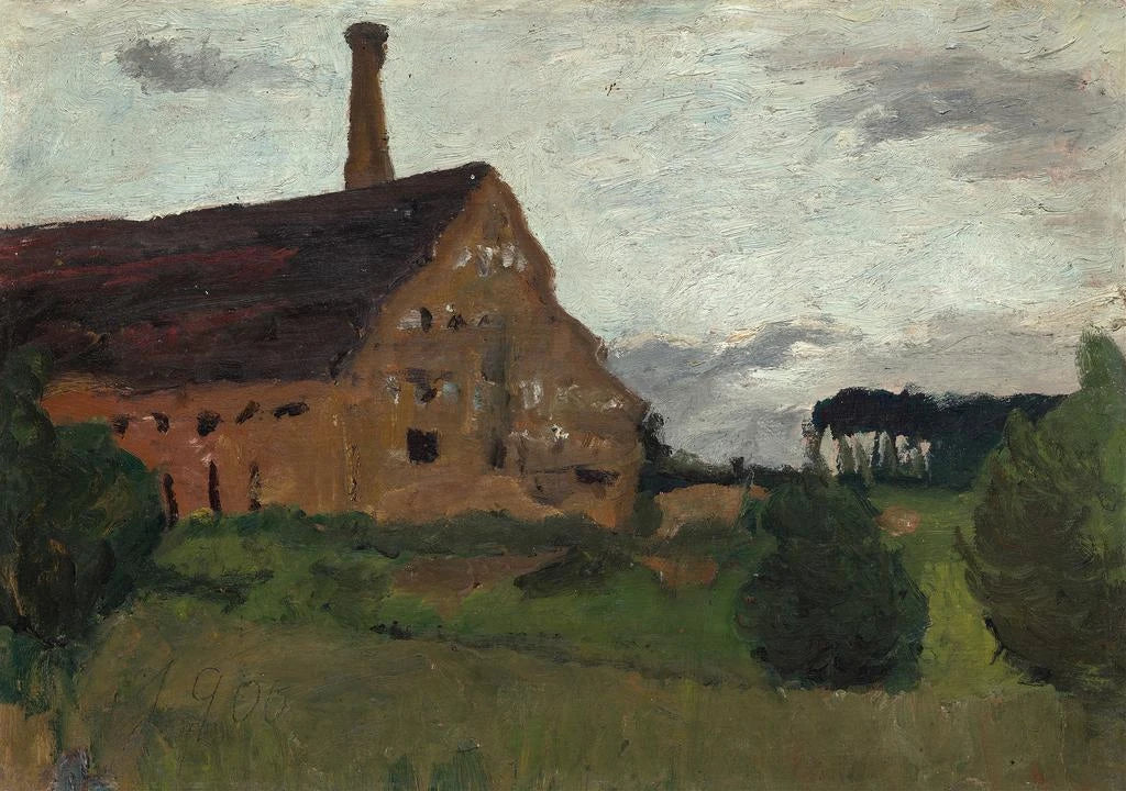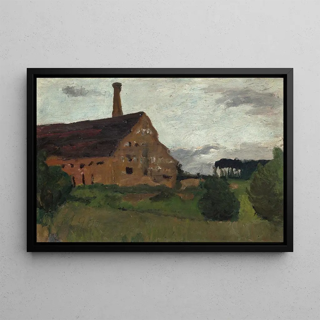 The canvas "Old Factory" by Paula Modersohn-Becker evokes a melancholic atmosphere, where the remnants of a bygone era blend with the surrounding nature. Earthy colors and shades of gray dominate, creating a striking contrast with touches of green that recall life reclaiming its rights. The artist's technique, characterized by expressive brushstrokes, gives the work emotional depth, inviting the viewer to reflect on the passage of time and the impact of industrialization on the landscape. This painting, both simple and poignant, immerses us in a contemplation of the memories of a changing world.
