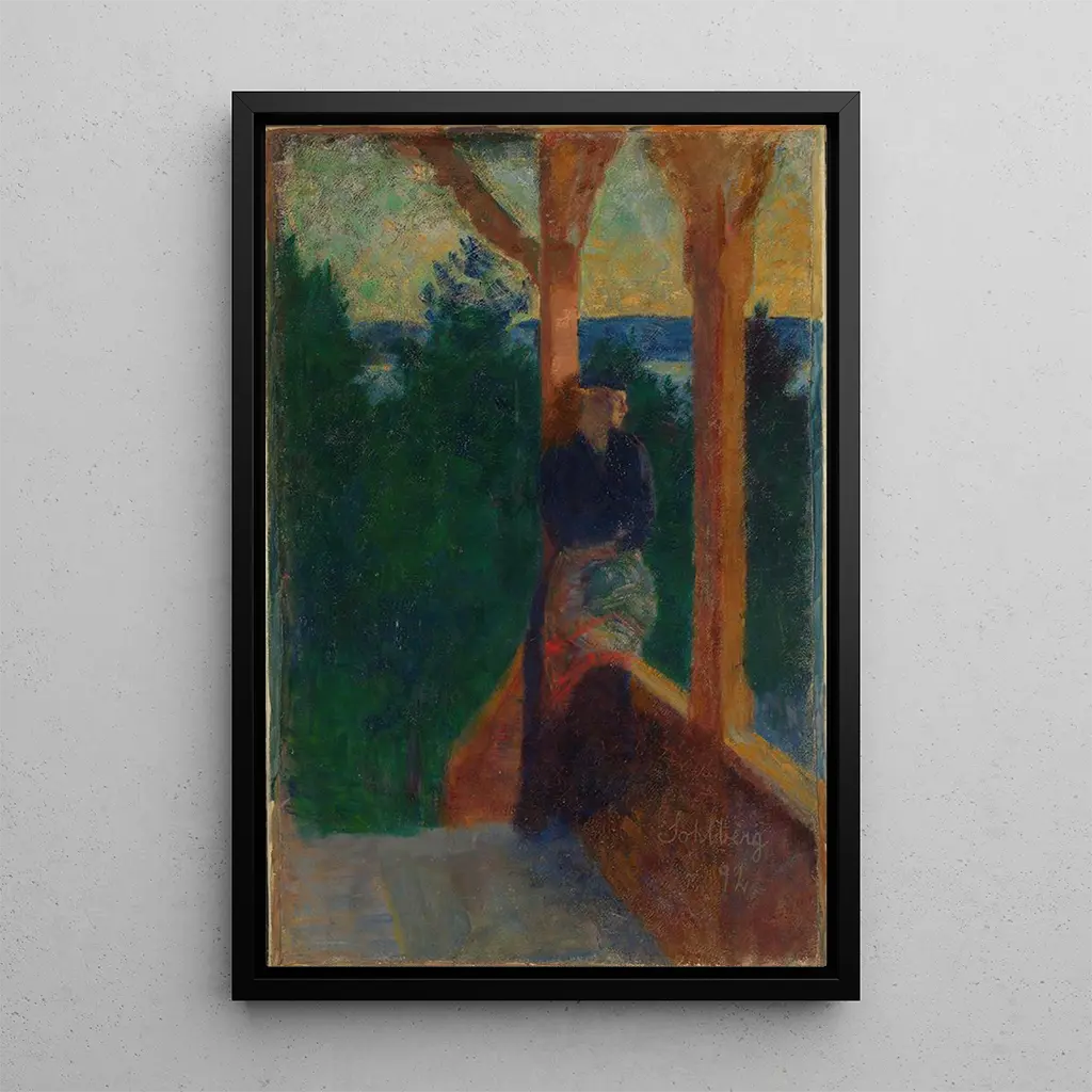 Harald Sohlberg, Norwegian painter of the early 20th century, is often associated with the Impressionist movement and landscape painting. His career is marked by an exploration of the effects of light on nature, which earned him recognition both in Norway and internationally. Influenced by Scandinavian landscapes, Sohlberg was able to capture the essence of nature through vibrant and luminous compositions. "On the veranda" testifies to his talent for transforming ordinary scenes into moments of exceptional beauty.