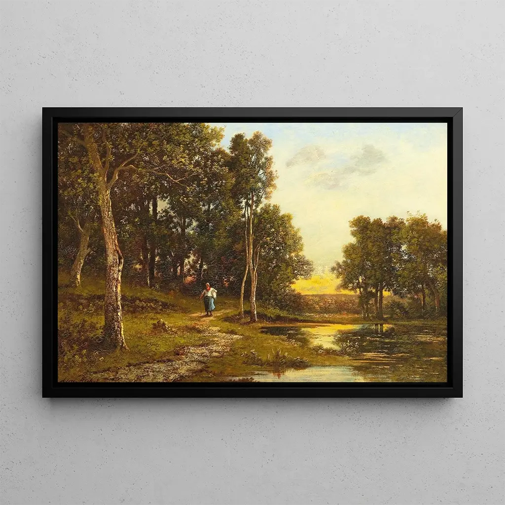 In this art print of On the Way Back, Léon Richet transports us to a bucolic landscape where light plays with shadows. The soft, pastel colors, typical of Impressionism, create a calming atmosphere. The characters, on their way home, seem enveloped in a moment of tranquility, while the trees and surrounding nature blend harmoniously. Richet's technique, combining light brushstrokes and delicate nuances, invites contemplation and escape. This painting evokes a simplicity and beauty that touch the heart, recalling the simple pleasures of life.