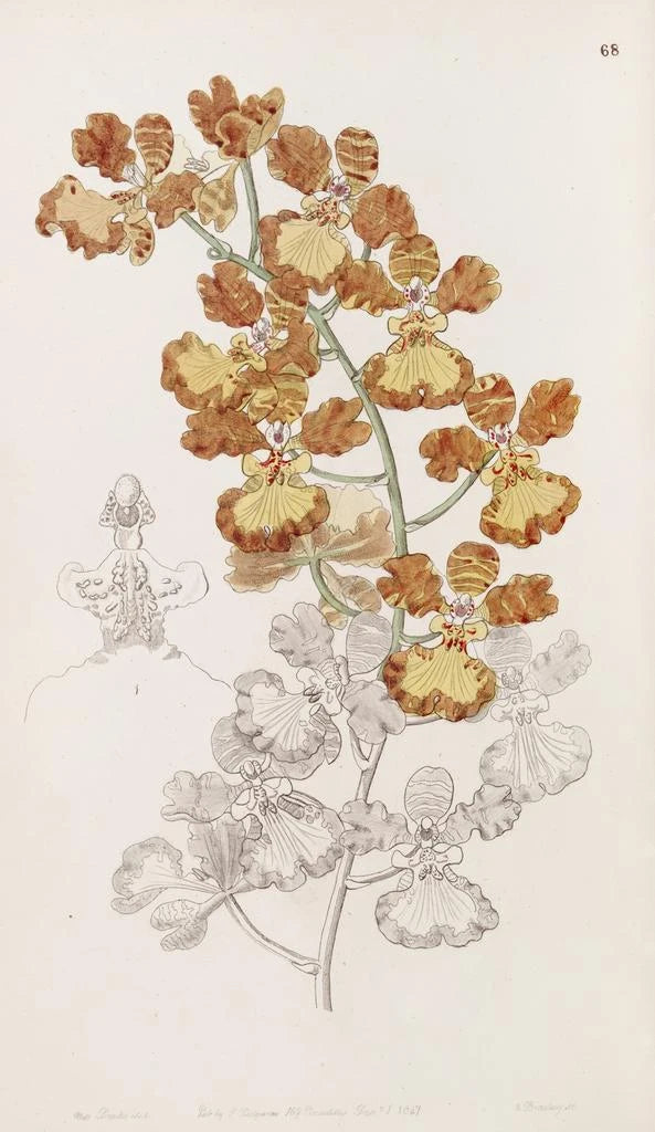 The Cut-ears Oncidium: A botanical marvel to admire The Cut-ears Oncidium, a captivating art print by Sydenham Edwards, immerses us in a world of delicacy and vibrant colors. This art print highlights the exceptional beauty of this orchid, with its finely detailed petals and shades of green and yellow. The watercolor technique used by Edwards gives this piece a light and airy atmosphere, almost ethereal. Every detail, from the leaf veins to the contours of the flowers, is carefully rendered, inviting the viewer to a thoughtful and wondrous contemplation of nature. Sydenham Edwards: a pioneer of botanical illustration Sydenham Edwards, active in the early 19th century, is recognized as one of the great botanical illustrators of his time. Influenced by the Romantic movement, he captured the beauty of plants with scientific precision while maintaining an artistic approach. His works, often published in reference books, played a crucial role in documenting plant species, especially those from America and Asia. The Cut-ears Oncidium is a perfect example of his unique style, combining rigor and sensitivity, and demonstrating the importance of botanical illustration in science and art. A decorative acquisition with multiple assets This reproduction of the painting The Cut-ears Oncidium is an ideal choice to enhance your interior. Whether in a living room, office, or bedroom, it adds a touch of freshness and nature. The quality of the print guarantees fidelity to the colors and details of the original artwork, allowing you to appreciate each nuance as if you were facing the original. Its aesthetic appeal, combined with its decorative character, makes it a central element that will inspire admiration from your guests and bring a serene atmosphere to your living space.