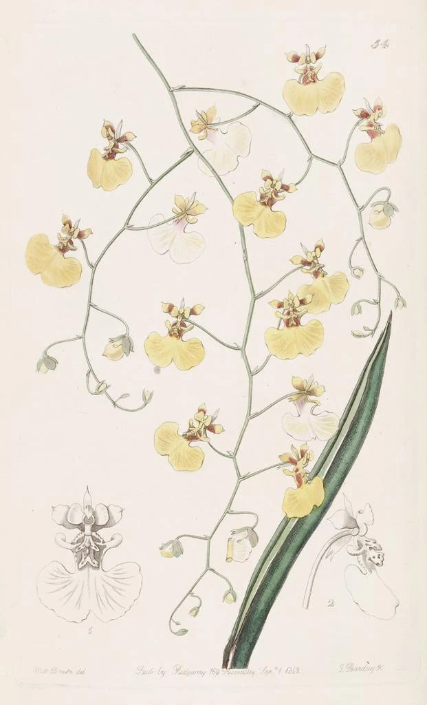 Art print Oncidium with linden leaves - Sydenham Edwards