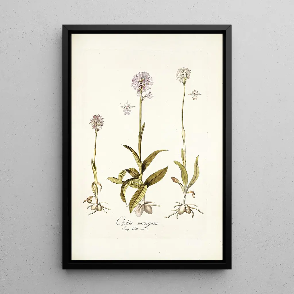 The art print of Orchis variegata is a decorative piece that will enhance any space, whether a living room, an office, or a bedroom. Its print quality guarantees remarkable fidelity to the original artwork, allowing you to enjoy every detail with exceptional clarity. The aesthetic appeal of this painting makes it an ideal choice for those who wish to bring a touch of nature and sophistication to their interior. By choosing this canvas, you opt for a decoration that combines elegance and culture, while celebrating the beauty of flowers.