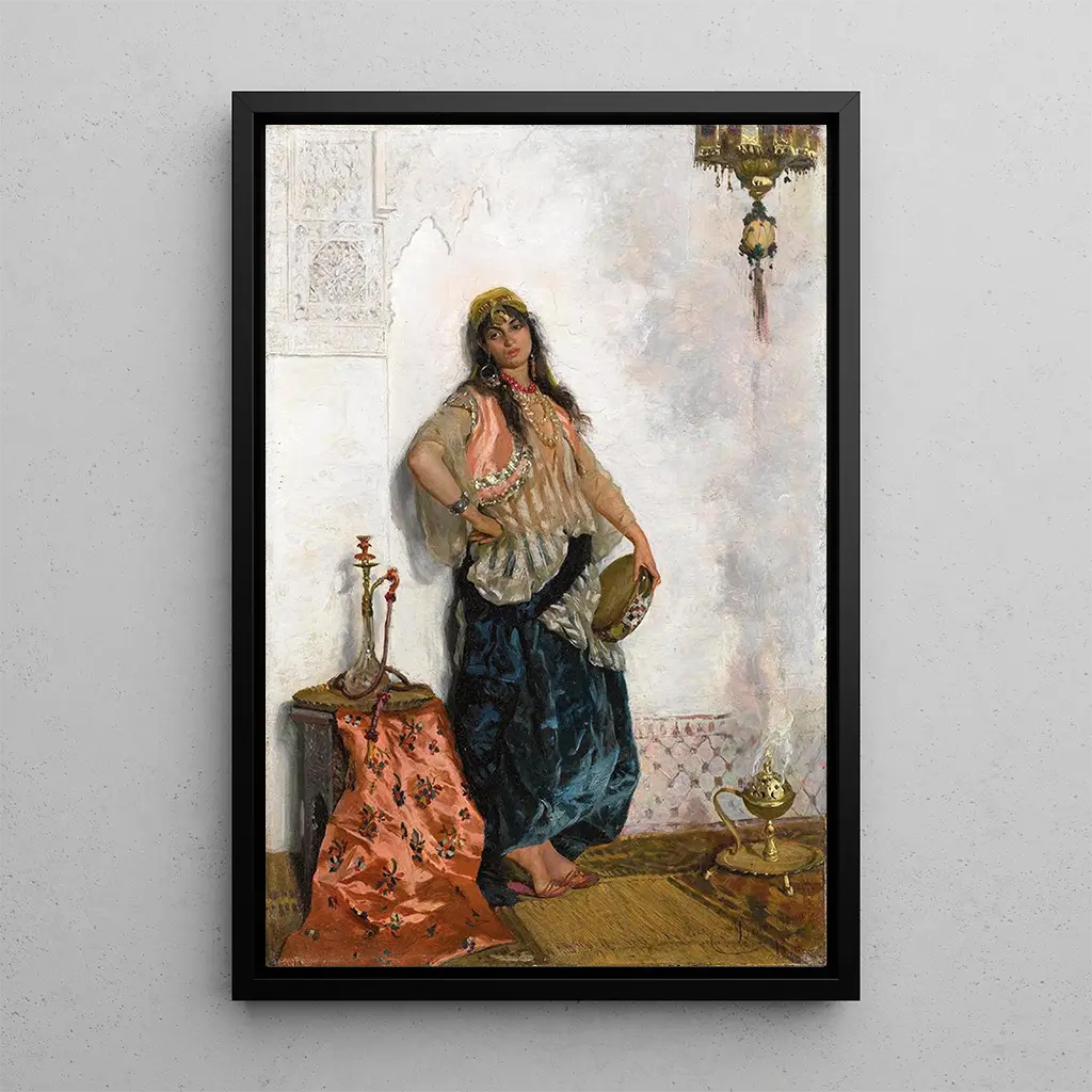 The reproduction of the Oriental Dancer by Cesare Biseo evokes a world of sensuality and elegance. In this artwork, the dancer is depicted in a fluid movement, her colorful garments adorned with delicate patterns floating around her. The warm hues of ochre and red blend harmoniously, creating a vibrant and captivating atmosphere. Biseo's technique, which combines realism with impressionist touches, captures not only the physical beauty of the dancer but also the energy and emotion of the performance. Every detail, from the draping of her costume to the expression on her face, transports the viewer into a universe rich in culture and history. Cesare Biseo: a master of Orientalist painting Cesare Biseo, an Italian painter of the 19th century, is renowned for his talent in depicting oriental scenes with great sensitivity. Influenced by his travels in North Africa and the Middle East, he was able to capture the essence of these cultures through his works. His style, often classified within the Orientalist movement, stands out for its ability to blend realism and romanticism, while highlighting the beauty of his subjects. Biseo was also influenced by contemporary artists such as Eugène Delacroix, which allowed him to develop a unique visual language. His legacy endures, and his works continue to inspire art enthusiasts around the world. A decorative acquisition with multiple advantages The reproduction of the Oriental Dancer is a decorative piece that will enhance any space, whether it be a living room, an office, or a bedroom. Its print quality and fidelity to the original colors ensure a striking visual rendering. By incorporating this painting into your decor, you add a touch of exoticism and sophistication to your interior. The aesthetic appeal of this artwork, combined with its rich history, makes it an ideal choice for those wishing to add an artistic dimension to their environment. This canvas is more than just a decoration; it is an invitation to dreaming and escapism.