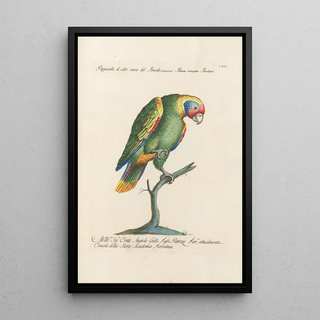 In this art print of Ornithology Methodically Arranged Pl116, Saverio Manetti immerses us in a universe where each bird is presented with scientific precision and artistic delicacy. The vivid colors and meticulous details of the plumage create a lively and captivating atmosphere. The composition, carefully arranged, highlights avian diversity, with each species showcased in its own space. The etching technique, combined with a naturalist approach, gives the artwork a depth that invites prolonged observation. One can almost feel the whisper of wings and the song of birds, making this canvas almost alive.
