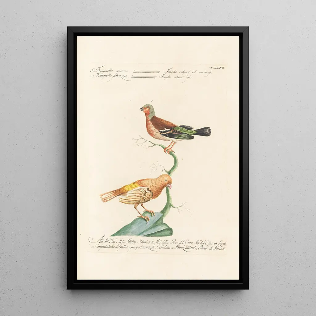 Saverio Manetti, naturalist and artist of the 18th century, skillfully combined science and art in his works. Influenced by the discoveries of his time, he contributed to the documentation of bird species while adding an artistic touch to his illustrations. His work is part of the ornithology movement, which gained momentum during this period, marked by a growing interest in nature and species classification. Manetti thus left a valuable legacy, blending scientific rigor with artistic sensitivity, making his art prints essential pieces for art and nature enthusiasts.