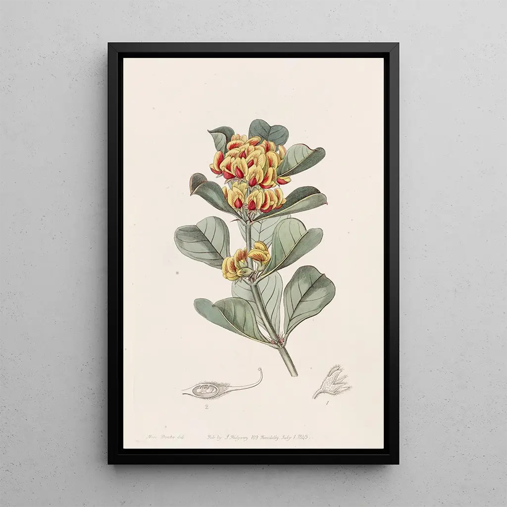 Oxylobium with corner leaves: a dance of vibrant colors The art print "Oxylobium with corner leaves" by Sydenham Edwards is a celebration of nature, where bright hues blend harmoniously. This reproduction highlights delicate leaves and flowers with unique shapes, capturing the very essence of this fascinating plant. The watercolor technique used by Edwards allows for subtle nuances and gradients that bring the composition to life. The atmosphere conveyed by this artwork is both soothing and inspiring, inviting the viewer to immerse themselves in a world of natural beauty. Sydenham Edwards: a pioneer of botanical illustration Sydenham Edwards, active in the early 19th century, is recognized as one of the first botanical illustrators of his time. His work is part of the Romantic movement, where nature is celebrated in all its splendor. Influenced by the botanical discoveries of his era, Edwards mastered the balance between scientific accuracy and artistic sensitivity. His illustrations, including "Oxylobium with corner leaves," are not only works of art but also valuable scientific documents. The significance of his work lies in his ability to capture the diversity of plant species while making them accessible to the general public. A decorative acquisition with multiple benefits The art print "Oxylobium with corner leaves" is an ideal choice to enhance your interior, whether in a living room, office, or bedroom. Its printing quality ensures remarkable fidelity to the colors and details of the original artwork. This piece adds a touch of freshness and nature to your decor, while also impressing your guests. With its undeniable aesthetic appeal, this canvas fits perfectly into various interior styles, adding a note of elegance and serenity to your living space.