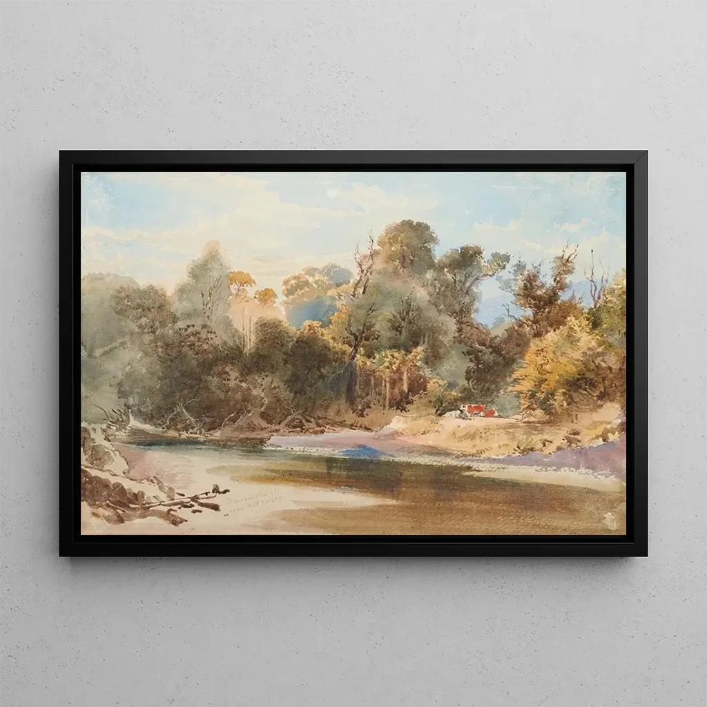 The art print of Pakuratahi Upper Hutt Valley transports us to the enchanting landscapes of New Zealand, where nature reigns supreme. Nicholas Chevalier, with his romantic style, captures the majesty of the mountains and the lush greenery of the valley. The vibrant shades of blue and green evoke the freshness of the rivers and the richness of the local flora. This work, both realistic and poetic, invites full immersion in a preserved natural environment, revealing the wild and serene beauty of this corner of the world.