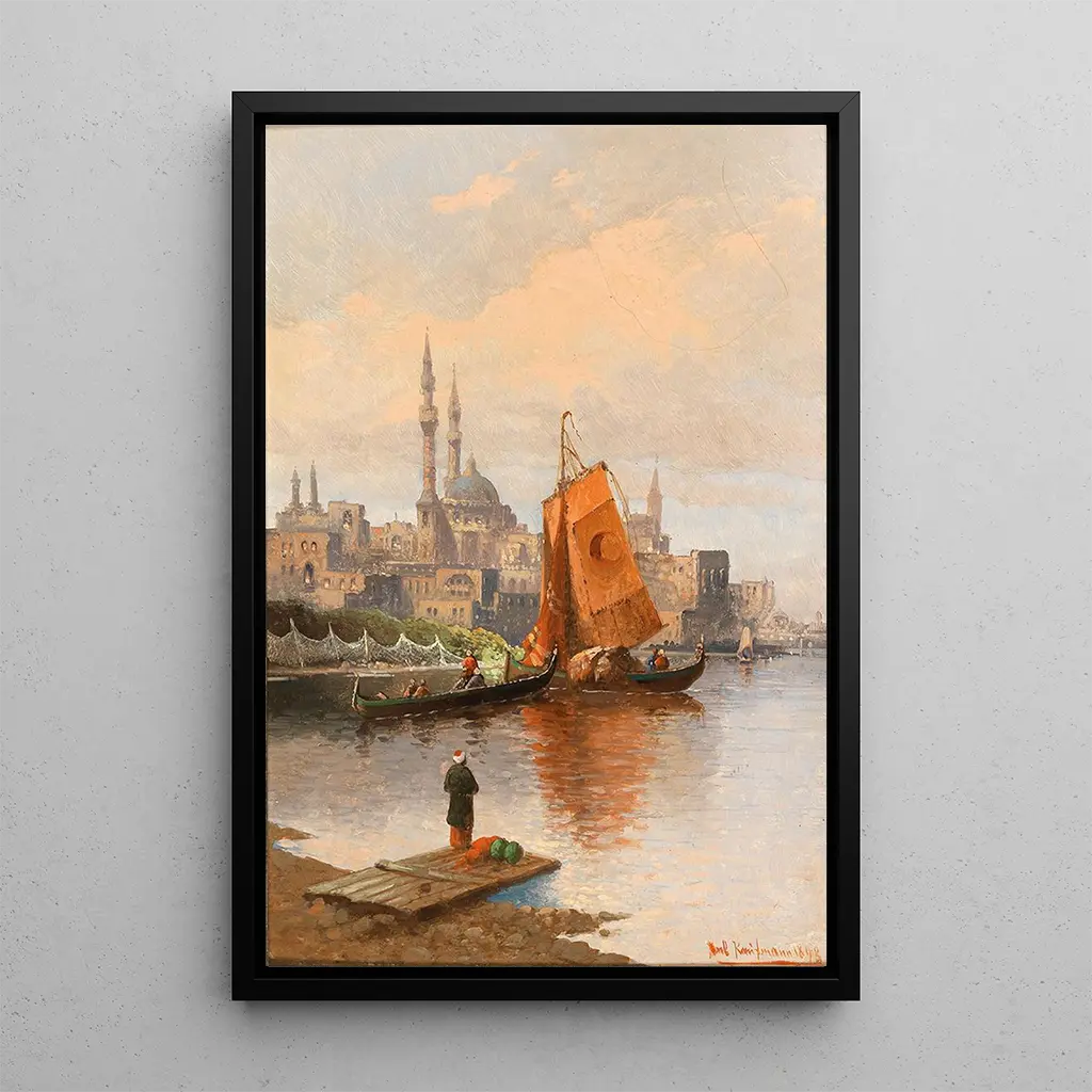 La art print de Partie de Constantinople nous plonge dans un tableau enchanteur, où la lumière dorée du soleil se reflète sur les eaux du Bosphore. Karl Kaufmann réussit à capturer l'essence de cette ville mythique, avec ses silhouettes de mosquées et ses bateaux traditionnels qui naviguent paisiblement. Les couleurs vibrantes et les détails minutieux de cette œuvre évoquent une atmosphère de sérénité et de mystère, invitant le spectateur à explorer les merveilles de Constantinople. Chaque élément de la composition semble vibrer d'une vie propre, témoignant du talent indéniable de l'artiste.