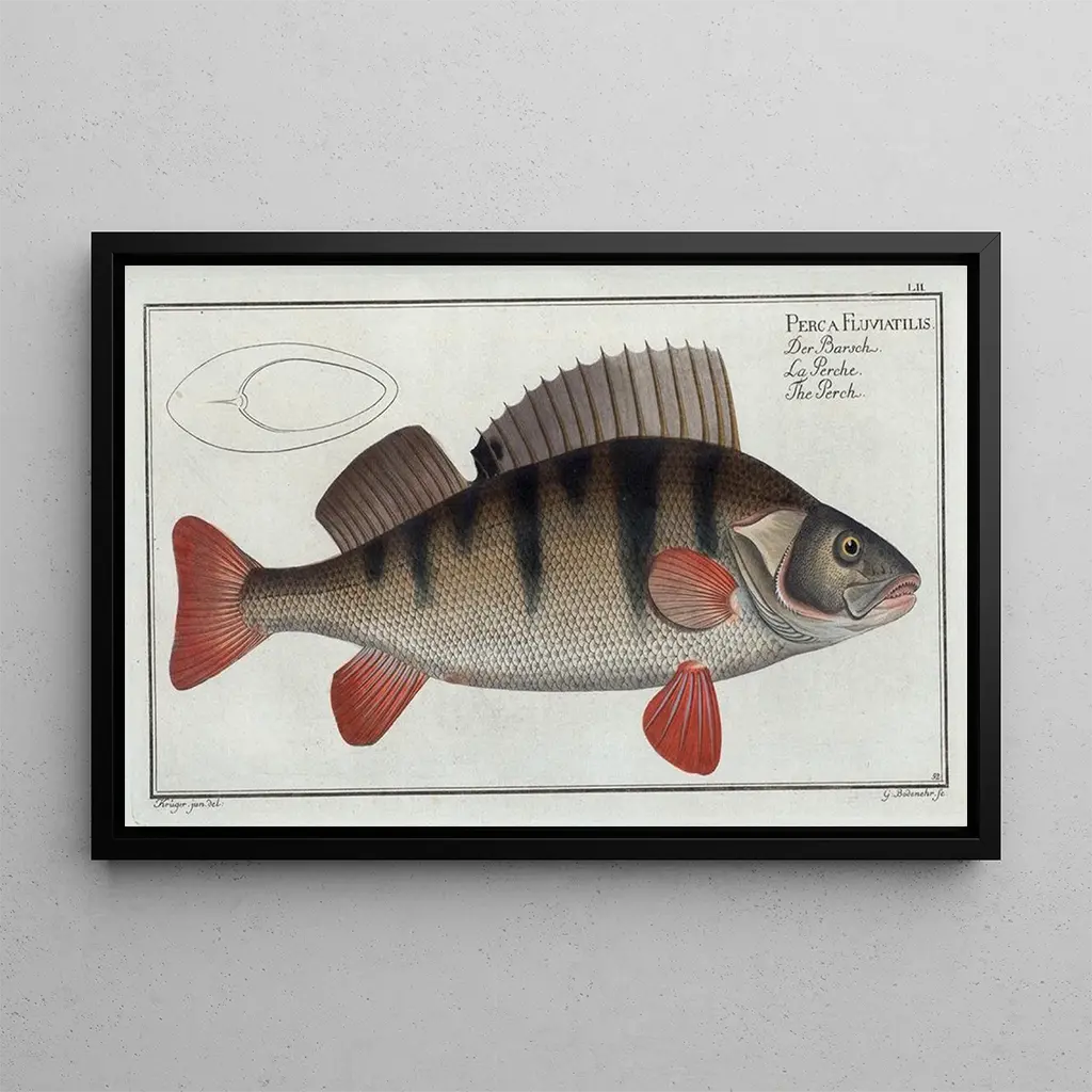 Perca fluviatilis art print La Perche : an immersion into the aquatic world The Perca fluviatilis art print, also known as La Perche, is a captivating piece that immerses the viewer in the fascinating universe of aquatic fauna. With touches of green and yellow, the artist captures the natural beauty of this iconic fish. The meticulous details of the scales and the fluidity of the movements evoke a sense of life and dynamism. The technique used, likely watercolor or engraving, allows for the rendering of water's transparency and the light reflected within it, creating a serene and contemplative atmosphere. This artwork invites exploration of the marine depths and discovery of the hidden wonders beneath the surface. Marcus Elieser Bloch: a pioneer of ichthyological illustration Marcus Elieser Bloch, an 18th-century naturalist and illustrator, is renowned for his significant contributions to the study of fish. His work is part of the natural science movement, where observation and precise representation of species were essential. Bloch traveled across Europe, drawing inspiration from various cultures and artistic techniques, which enriched his unique style. His illustrations, including the art print of La Perche, are not only works of art but also scientific documents that helped catalog the aquatic biodiversity of his time. His legacy endures, influencing generations of artists and scientists. A decorative acquisition with multiple virtues The Perca fluviatilis art print is an ideal decorative piece for various spaces, whether in a living room, office, or bedroom. Its print quality and fidelity to the details of the original work make it an attractive choice for art and nature enthusiasts. Hung on the wall, this canvas adds a touch of elegance and serenity, while sparking conversations about the beauty of the aquatic world. By integrating this piece into your interior decor, you not only acquire an aesthetic element but also a window into the richness of marine life.