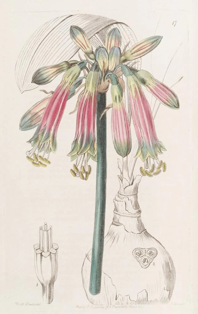 Painting Phaedranassa cramoisie et verte - Sydenham Edwards