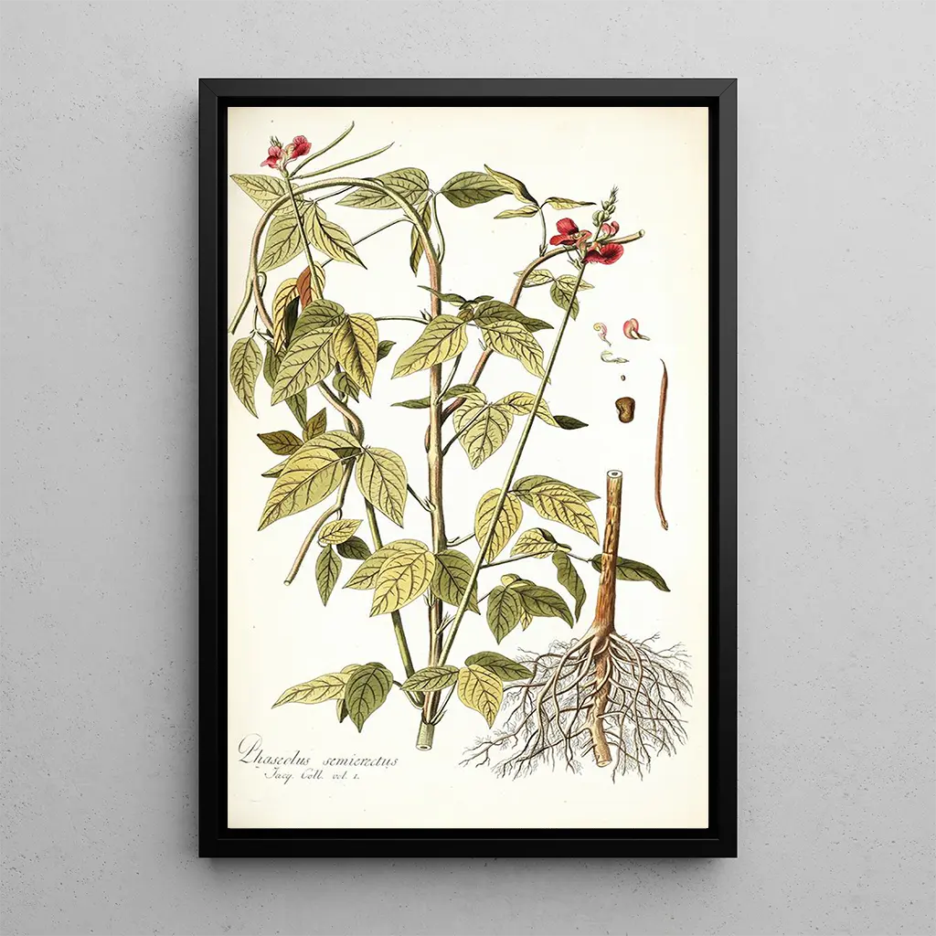 The art print of Phaseolus semierectus is an ideal decorative piece to bring a touch of nature into your interior. Whether in a living room, office, or bedroom, this artwork integrates perfectly with various styles of decoration, from classic to contemporary. Its printing quality guarantees fidelity to the colors and details of the original work, while offering undeniable aesthetic appeal. By choosing this canvas, you opt for a piece that not only enhances your space but also tells a fascinating story about botany and art, enriching your daily environment.