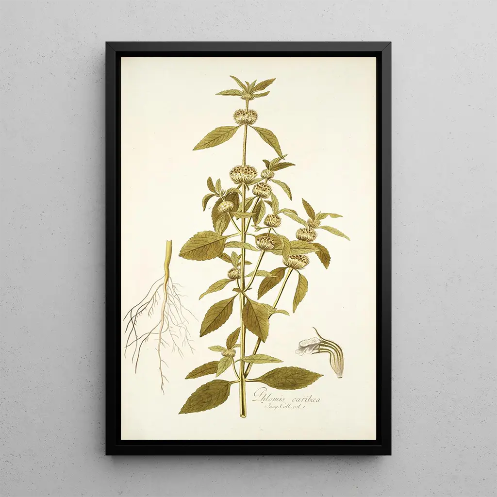 The art print of Phlomis caribaea, created by Nikolaus Joseph Freiherr von Jacquin, immerses us in a fascinating botanical universe. With vibrant colors and meticulous details, this canvas evokes the richness of tropical flora. The shades of green and yellow blend harmoniously, creating a lively and soothing atmosphere. The watercolor technique, used with mastery, captures the lightness of the leaves and the delicacy of the flowers. Each element seems to breathe, inviting the viewer to a careful contemplation of nature's wonders.