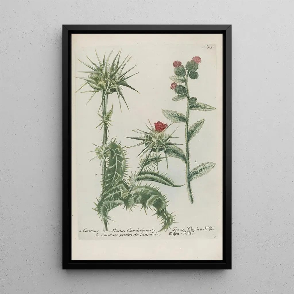 Phytanthoza iconographia art print Pl036 : a journey into the heart of the flora The reproduction of Phytanthoza iconographia art print Pl036 transports the viewer into a fascinating botanical universe. This piece, rich in detail, features a multitude of plants with varied shapes and vibrant colors. The shades of blue, yellow, and green intertwine harmoniously, creating a composition that is both dynamic and soothing. Johann Wilhelm Weinmann's engraving technique captures each texture and shadow with striking precision, offering an immersive visual experience. This canvas invites contemplation, revealing the beauty and complexity of the plant world. Johann Wilhelm Weinmann: a master of botanical art Johann Wilhelm Weinmann is recognized as one of the pioneers of botanical illustration in the 18th century. His passion for plants and his desire to depict them faithfully led him to create works that combine scientific rigor and aesthetic appeal. Throughout his career, he was influenced by the botanical explorations of his time, which enabled him to discover and portray rare and exotic species. His publications, notably the series Phytanthoza iconographia, have had a lasting impact on the field of botanical art, making him an essential figure for enthusiasts and researchers. A decorative acquisition with multiple assets The reproduction of Phytanthoza iconographia art print Pl036 is a decorative piece that will enhance your interior. Whether in a living room, office, or bedroom, this artwork will add a touch of nature and elegance to your space. Its printing quality guarantees exceptional fidelity to the colors and details of the original work, allowing you to fully enjoy its aesthetic appeal. By choosing this canvas, you opt for a piece that not only beautifies your decor but also sparks admiration and interest in the plant world.