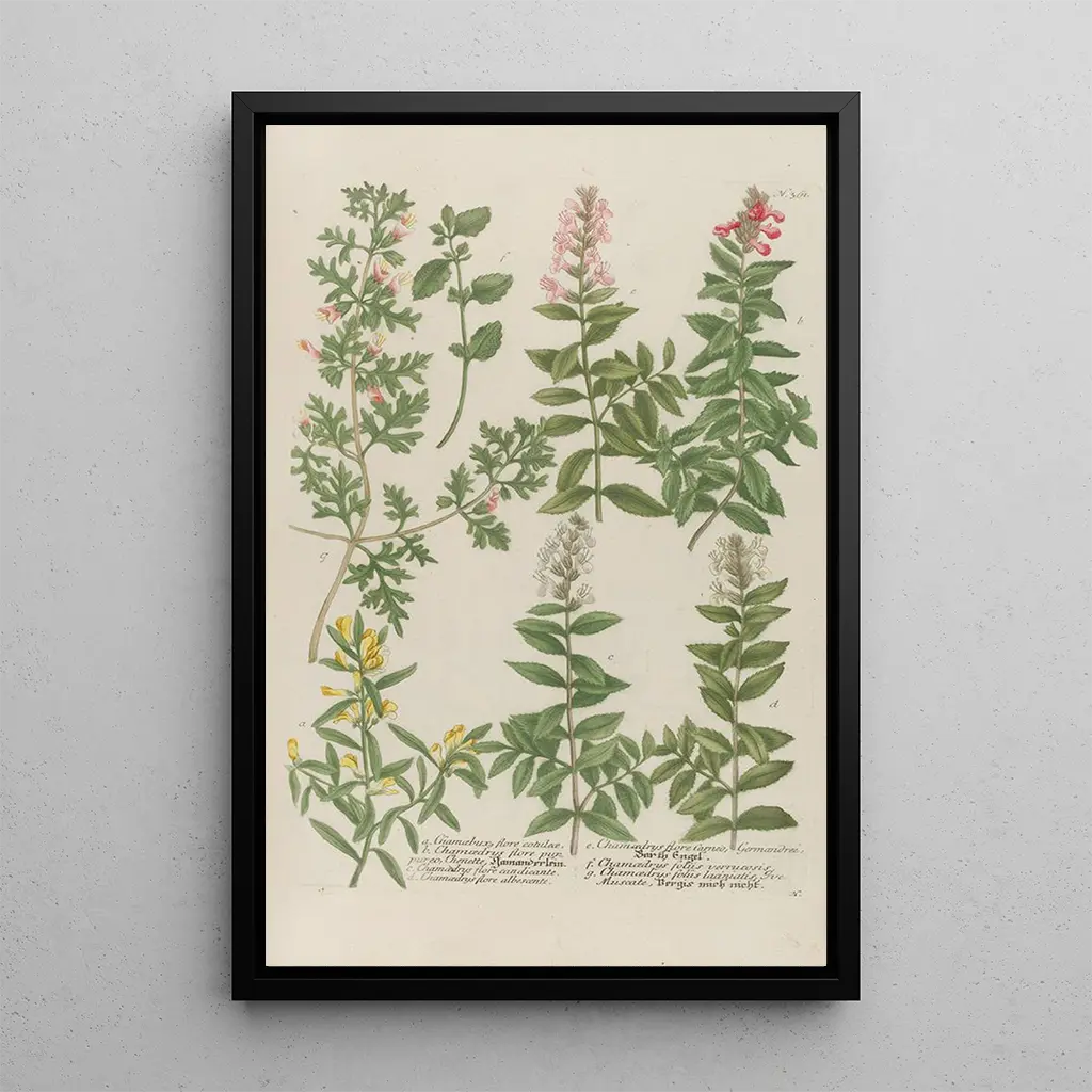 The art print of Phytanthoza iconographia Pl084 offers a fascinating immersion into the plant world, revealing a composition rich in detail and color. The vibrant shades of green, yellow, and red intertwine to create a captivating visual harmony. The engraving technique used by Johann Wilhelm Weinmann highlights the texture of the leaves and the delicacy of the flowers, inviting the viewer to explore each element with attention. The atmosphere conveyed by this artwork is both soothing and stimulating, like a walk through a lush garden, where each plant tells a story.