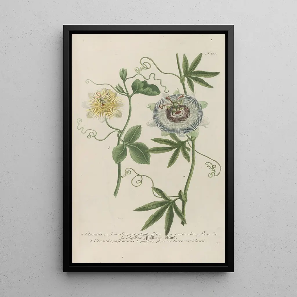 Phytanthoza iconographia Pl119: A Celebration of Nature The art print of Phytanthoza iconographia Pl119 invites a visual journey into the heart of botany. This piece, created with meticulous precision, highlights a variety of exotic plants, illustrating the richness and diversity of flora. The vibrant colors, ranging from deep greens to bright floral hues, create an atmosphere that is both calming and invigorating. The engraving technique used by Johann Wilhelm Weinmann captures even the finest details, making each leaf and petal almost tangible. This canvas is a true ode to natural beauty, perfect for those who appreciate the delicacy of nature. Johann Wilhelm Weinmann: A Pioneer of Botanical Illustration Johann Wilhelm Weinmann, botanist and illustrator of the 18th century, left his mark through his contributions to scientific illustration. Active during the Baroque movement, he masterfully combined art and science, making botany accessible to a broad audience. His works, including the series Phytanthoza iconographia, are considered references in the field of botanical illustration. Influenced by the discoveries of his time and cultural exchanges, Weinmann captured the essence of plants with unparalleled precision. His work not only enriched botanical knowledge but also inspired many artists and scientists. A Decorative Acquisition with Multiple Benefits The art print of Phytanthoza iconographia Pl119 is a decorative piece that will enhance any space, whether in a living room, office, or bedroom. Its print quality and fidelity to the original details make it an ideal choice for art and botany enthusiasts. By integrating this artwork into your decor, you bring a touch of elegance and serenity to your interior. The aesthetic appeal of this piece, with its vibrant colors and natural theme, makes it an excellent focal point that will inspire admiration from your guests.