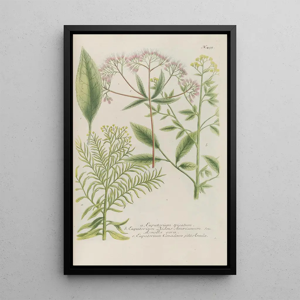 Phytanthoza iconographia Pl218: a celebration of biodiversity The art print of Phytanthoza iconographia Pl218 is a captivating piece that invites you to explore the richness of flora. The vibrant colors and intricate details of the illustrated plants capture the eye and spark curiosity. The engraving technique used by Johann Wilhelm Weinmann allows each leaf and petal to be rendered with remarkable precision, creating an atmosphere that is both scientific and poetic. This artwork, a true ode to nature, evokes a world where the beauty of plants is highlighted, encouraging contemplation and wonder. Johann Wilhelm Weinmann: a pioneer of botanical illustration Johann Wilhelm Weinmann, an 18th-century botanist and illustrator, left his mark through his contributions to botanical art. Active during a period when science and art converged, he mastered capturing the essence of plants with unparalleled accuracy. Influenced by the botanical discoveries of his time, Weinmann published several works, including the renowned Phytanthoza iconographia, which served as a reference for botanists and artists. His work is not only a testament to scientific exploration but also a celebration of natural beauty, making him a key figure in the history of botanical art. A decorative acquisition with multiple benefits The art print of Phytanthoza iconographia Pl218 is an ideal decorative choice for various spaces, whether in a living room, office, or bedroom. Its print quality and fidelity to the original details make it a piece of art that draws the eye and enhances the ambiance of any room. With its aesthetic appeal, this artwork adds a touch of nature to your interior decor while sparking conversations about biodiversity and botanical art. Adding this canvas to your collection is a way to combine beauty and knowledge, while beautifying your living space.