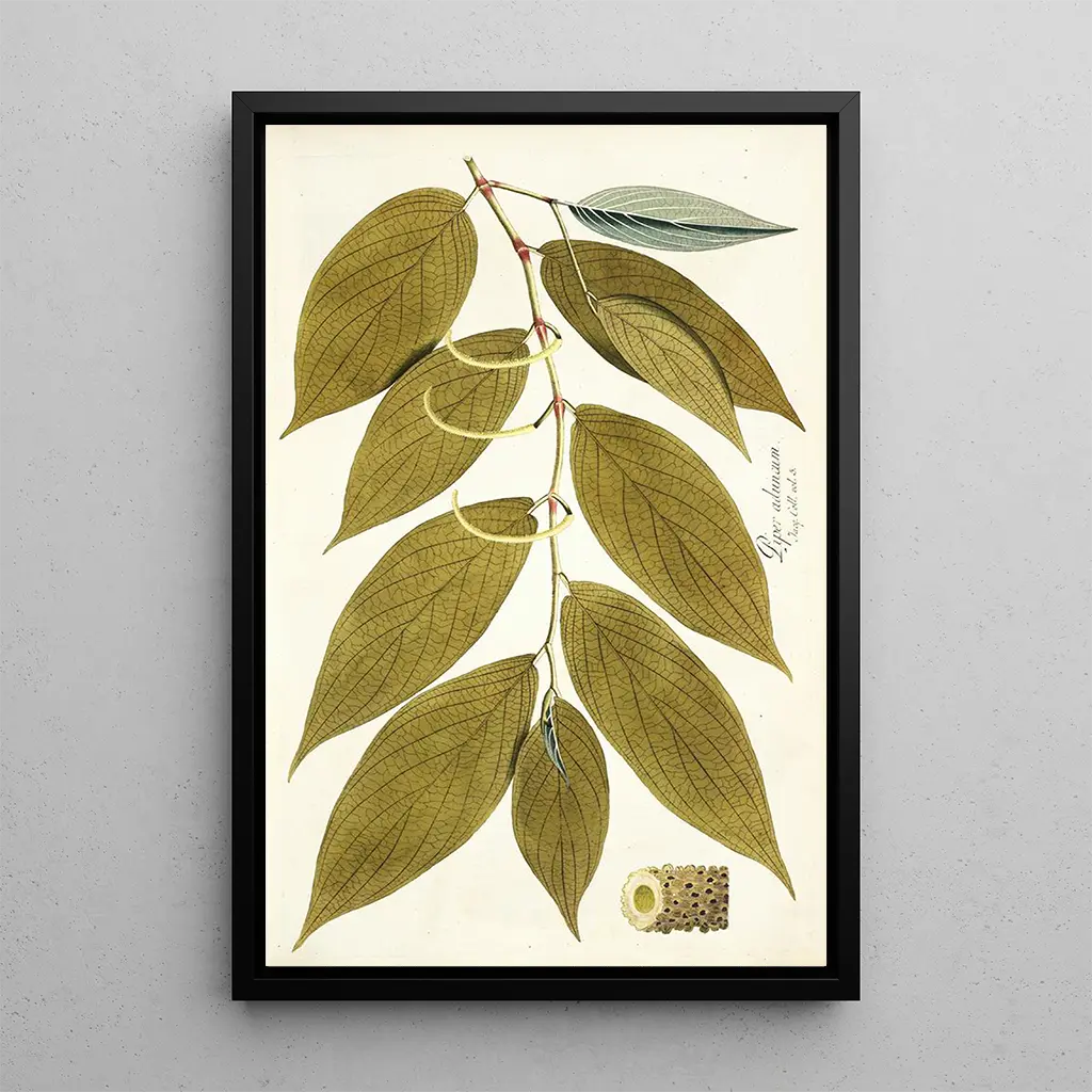 The art print of Piper aduncum is an ideal decorative piece to bring a touch of nature to your interior. Whether in a living room, office, or bedroom, this painting evokes a calming and inspiring atmosphere. Its printing quality guarantees fidelity to the colors and details of the original, making this canvas a true aesthetic asset. By choosing this work, you opt for a decoration that combines elegance and culture, while celebrating the beauty of the plant world.