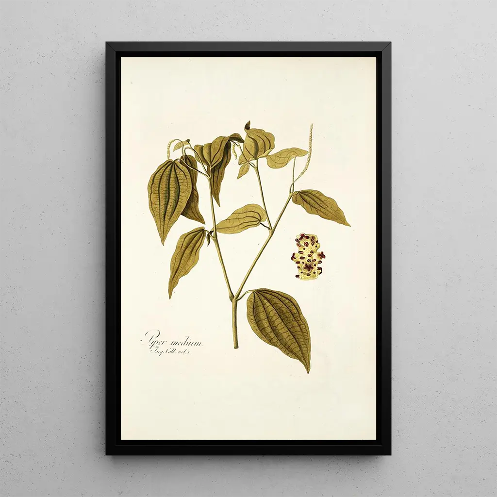 The art print of Piper medium, a work by Nikolaus Joseph Freiherr von Jacquin, offers an immersion into the fascinating world of tropical plants. With its vibrant hues and meticulous details, this canvas captures the very essence of biodiversity. The watercolor technique used by Jacquin allows for a realistic rendering of leaf textures and color luminosity, creating a lively and dynamic atmosphere. Each element of the composition seems to tell a story, inviting the viewer to discover the wonders of nature.