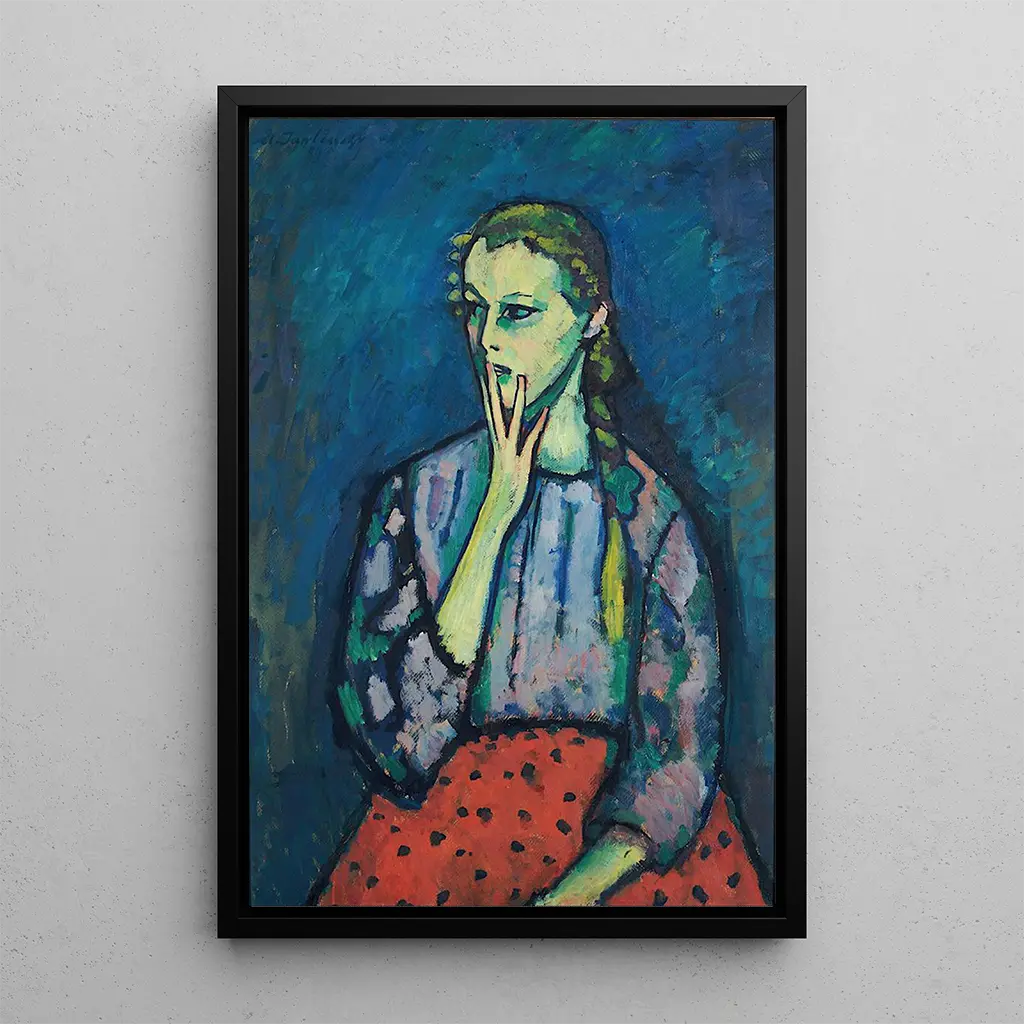 Portrait of a young girl: an exploration of the feminine soul The art print "Portrait of a young girl" by Alexej von Jawlensky is a vibrant piece that captures the very essence of youth and innocence. The vivid colors, ranging from deep blues to delicate pinks, create an atmosphere that is both dreamy and introspective. Jawlensky's technique, characterized by bold brushstrokes and stylized forms, brings this enigmatic face to life. The artwork invites the viewer to delve into the thoughts and emotions of the young girl, revealing a psychological depth that transcends a simple portrait. Alexej von Jawlensky: the innovator of the expressionist movement Alexej von Jawlensky, born in Russia in 1864, is an iconic figure of expressionism, an artistic movement that emerged in the early 20th century. Influenced by artists such as Vincent van Gogh and Henri Matisse, Jawlensky sought to express deep emotions through vivid colors and abstract forms. His artistic journey led him to Munich, where he became a member of the group "Der Blaue Reiter," which advocates the importance of art as a means of spiritual expression. The "Portrait of a young girl" art print perfectly illustrates his unique style and his commitment to expressing the human soul. A decorative acquisition with multiple advantages The reproduction of the "Portrait of a young girl" is a decorative piece that harmoniously integrates into various spaces, whether in a modern living room, an artistic office, or an intimate bedroom. Its reproduction quality ensures remarkable fidelity to the colors and details of the original artwork, allowing you to enjoy the aesthetic appeal of this iconic canvas. By adding this art print to your collection, you are not only acquiring a piece of art but also inviting a touch of emotion and reflection into your interior.