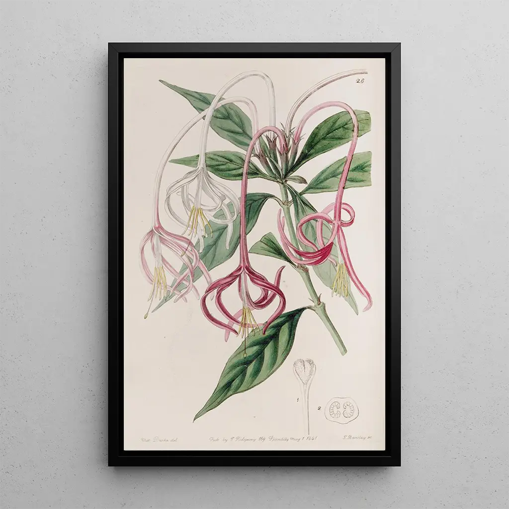 The Posoqueria changeante, a captivating art print by Sydenham Edwards, reveals a palette of vibrant colors and a finesse of details that captivate the eye. This art print highlights the unique beauty of this tropical plant, whose flowers seem to vibrate with energy. The shades of yellow, red, and green blend harmoniously, creating a lively and joyful atmosphere. The watercolor technique used by Edwards brings this canvas to life, inviting the viewer to explore the wonders of nature through an artistic lens.