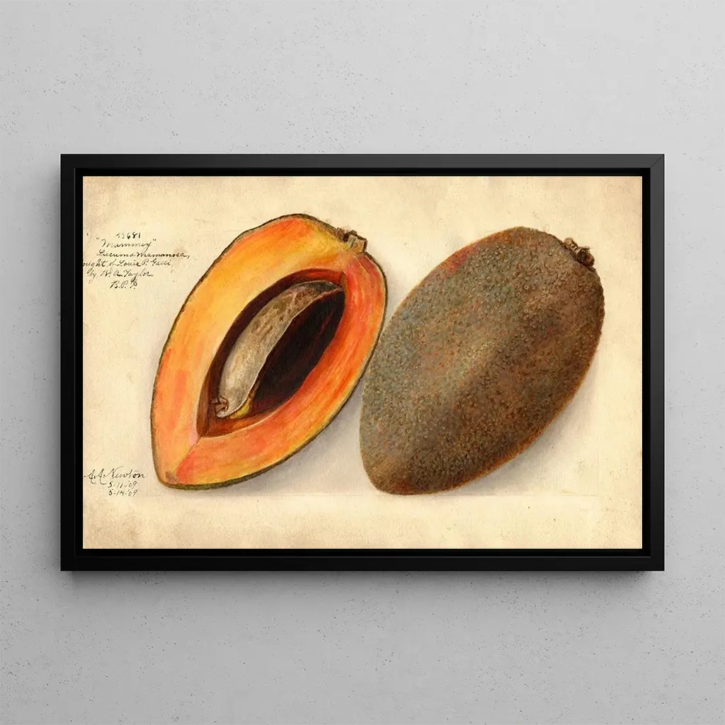 The art print of Pouteria campechiana Mammey is an ideal decorative piece to enhance your interior. Whether in a living room, office, or bedroom, this artwork adds a touch of exoticism and freshness. Its printing quality guarantees faithful reproduction of the colors and details of the original work, allowing you to appreciate the full richness of Newton's creation. The aesthetic appeal of this canvas makes it a perfect choice for those looking to enrich their decor while celebrating the beauty of nature.