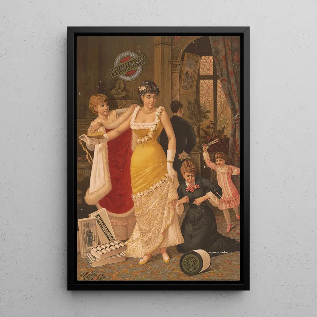 The Willimantic Linen Co, founded in the 19th century, is an emblematic example of American industrial growth. As a linen manufacturer, the company played a crucial role in the development of the textile industry in the United States. The works created to promote its products, such as "Preparations for the ball," testify to the importance of aesthetics in marketing of the time. This painting, while highlighting the company's products, also reflects the social and cultural values of its era, where the ball was a symbol of status and refinement.