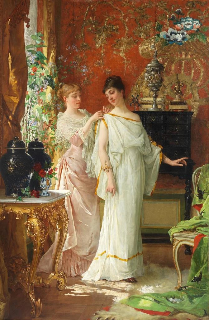 Preparations : a scene of life imbued with tenderness In "Preparations," Jan Verhas immerses us in an intimate atmosphere where soft light caresses the faces of the characters. The composition, centered on a woman engaged in an activity, evokes a sense of tranquility and harmony that invites contemplation. The pastel colors, dominated by warm shades, create a feeling of warmth and comfort. Verhas's technique, blending realism and impressionist touches, brings each detail to life, from the draped clothing to the delicate expressions on the faces. This art print is a true ode to everyday life, capturing a fleeting moment with great sensitivity. Jan Verhas: a master of Belgian realism Jan Verhas, a Belgian painter of the 19th century, is recognized for his skill in depicting genre scenes with remarkable finesse. Influenced by realism and impressionism, he was able to capture moments of daily life with emotional depth. Verhas studied at the Royal Academy of Fine Arts of Brussels and was exposed to contemporary artists such as Gustave Courbet. His work is characterized by meticulous attention to detail and a subtle use of light, which allowed him to establish a reputation in the art world. "Preparations" is a perfect example of his style, combining technique and sensitivity. A decorative art print with multiple assets The reproduction of "Preparations" is a decorative piece that will enhance any space, whether a living room, office, or bedroom. Its quality of reproduction guarantees remarkable fidelity to the colors and details of the original artwork, adding a touch of elegance and serenity to your interior. With its aesthetic appeal, this art print invites contemplation and daydreaming, creating a warm and welcoming atmosphere. By choosing this canvas, you opt for a piece that not only beautifies but also tells a story, that of a suspended moment in time.