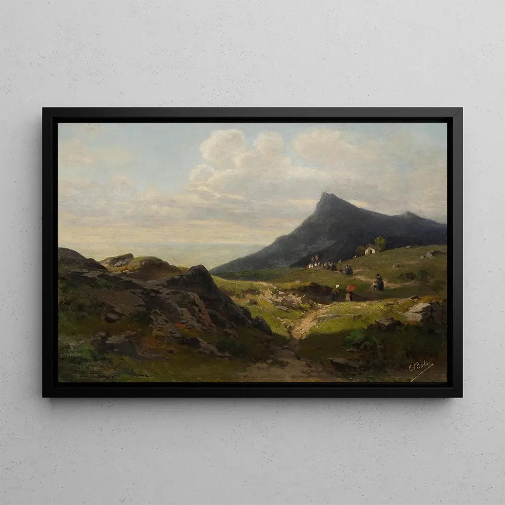The art print of Procession by Carl Bolze captures a vibrant moment of community life. The characters, dressed in traditional costumes, move with ritual grace, while the bright colors and meticulous details evoke a festive atmosphere. Bolze's technique, blending realism with impressionist touches, creates a captivating visual dynamic. The piece invites the viewer to immerse themselves in a collective celebration, where each face tells a story of devotion and joy.